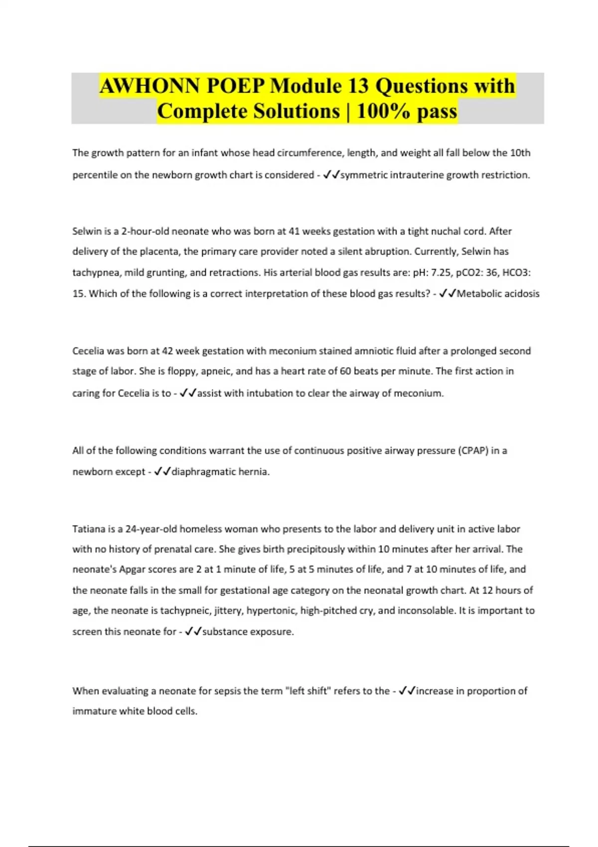 AWHONN POEP Module 13 Questions with Complete Solutions | 100% pass