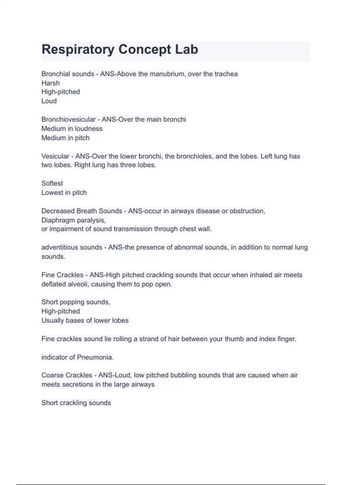- Respiratory Concept Lab