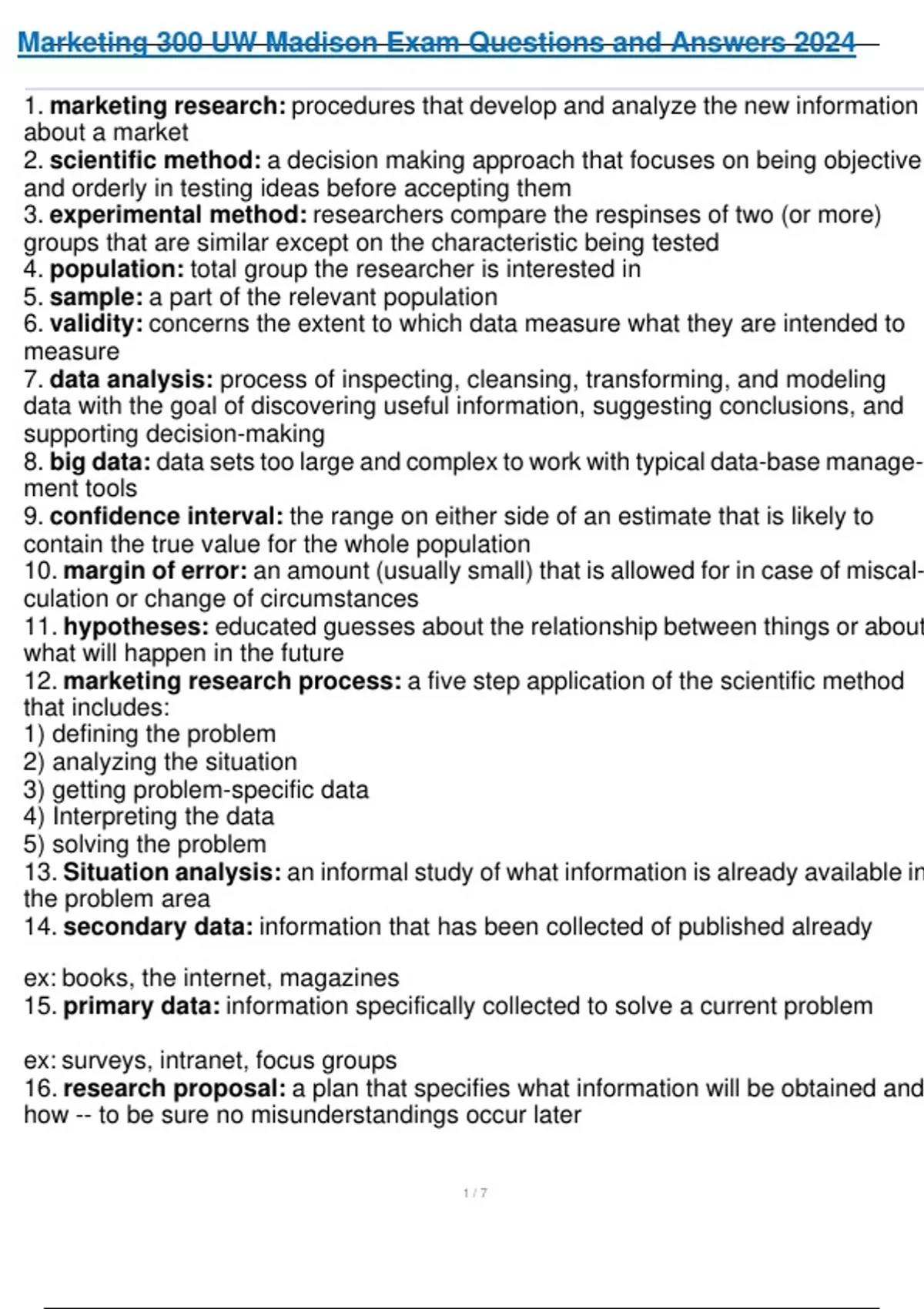 Marketing 300 UW Madison Exam Questions and Answers 2024