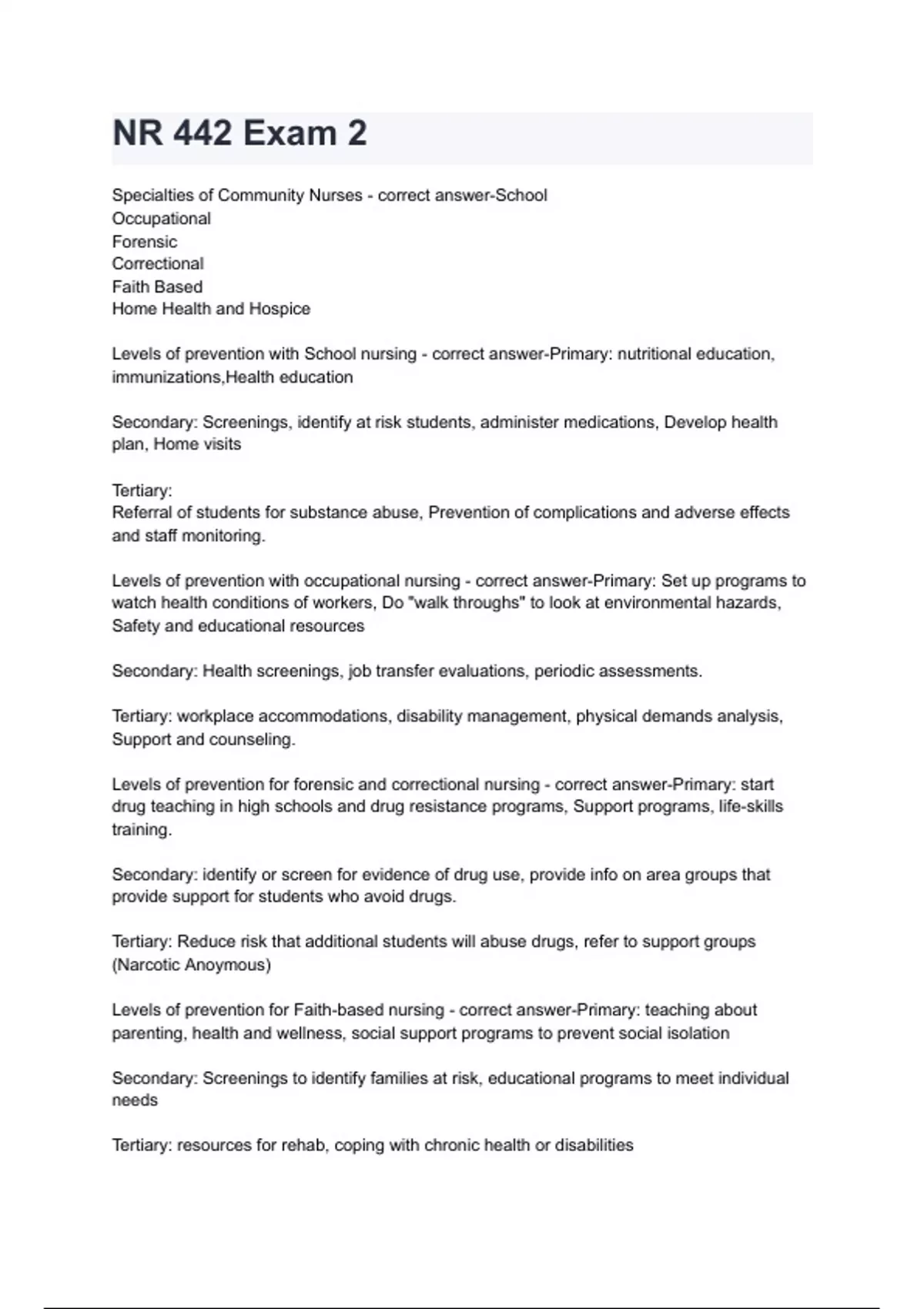 nr 442 exam 2 with 100 correct answers
