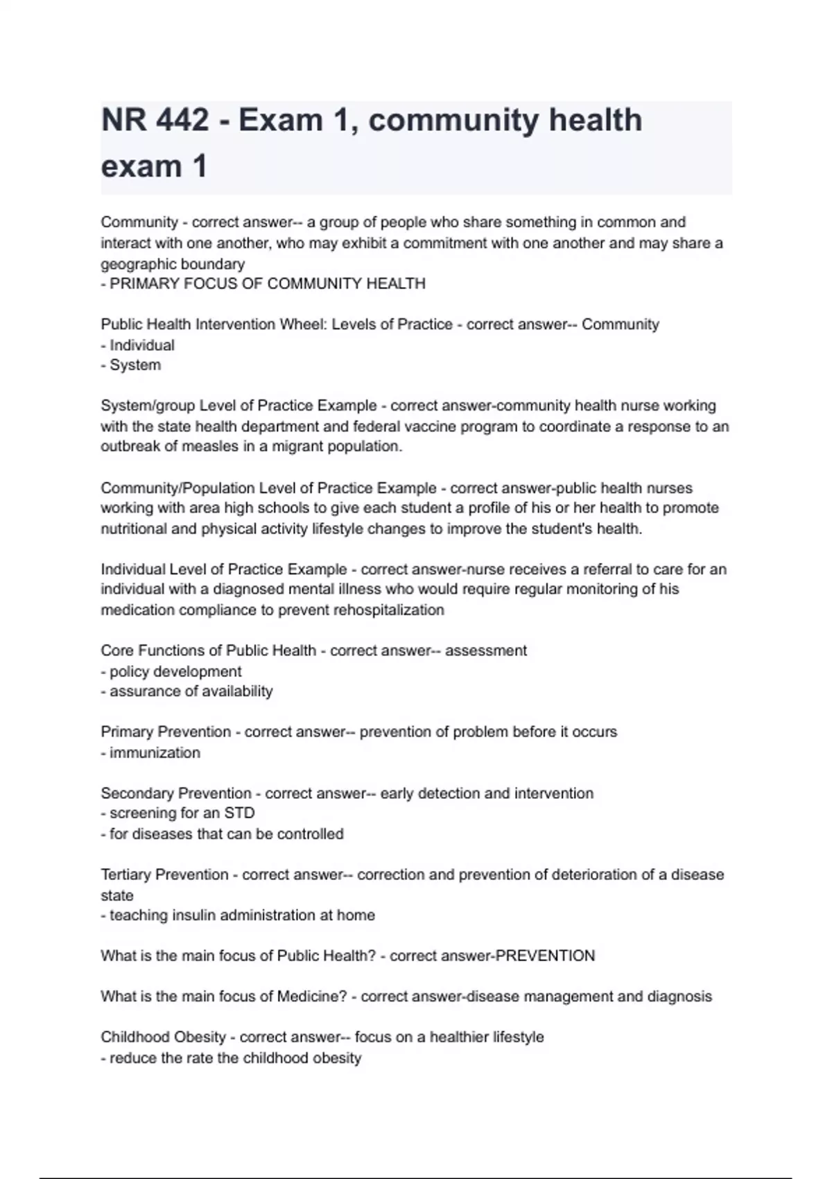 NR 442 - Exam 1, community health exam 1 with 100% correct answers