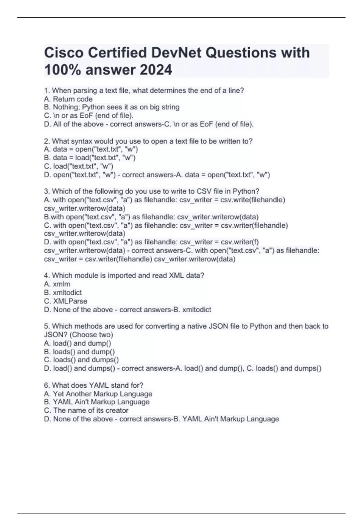 Cisco Certified DevNet Questions with 100% answer 2024