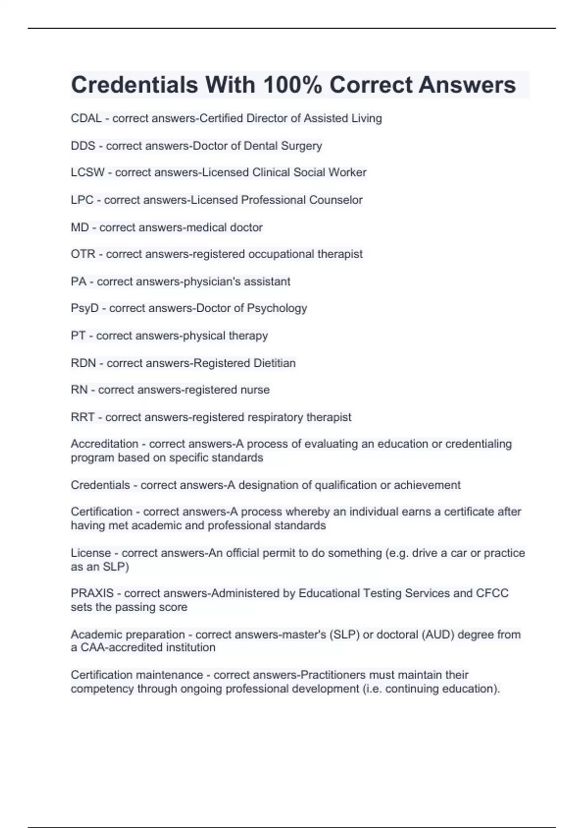 Credentials With 100% Correct Answers