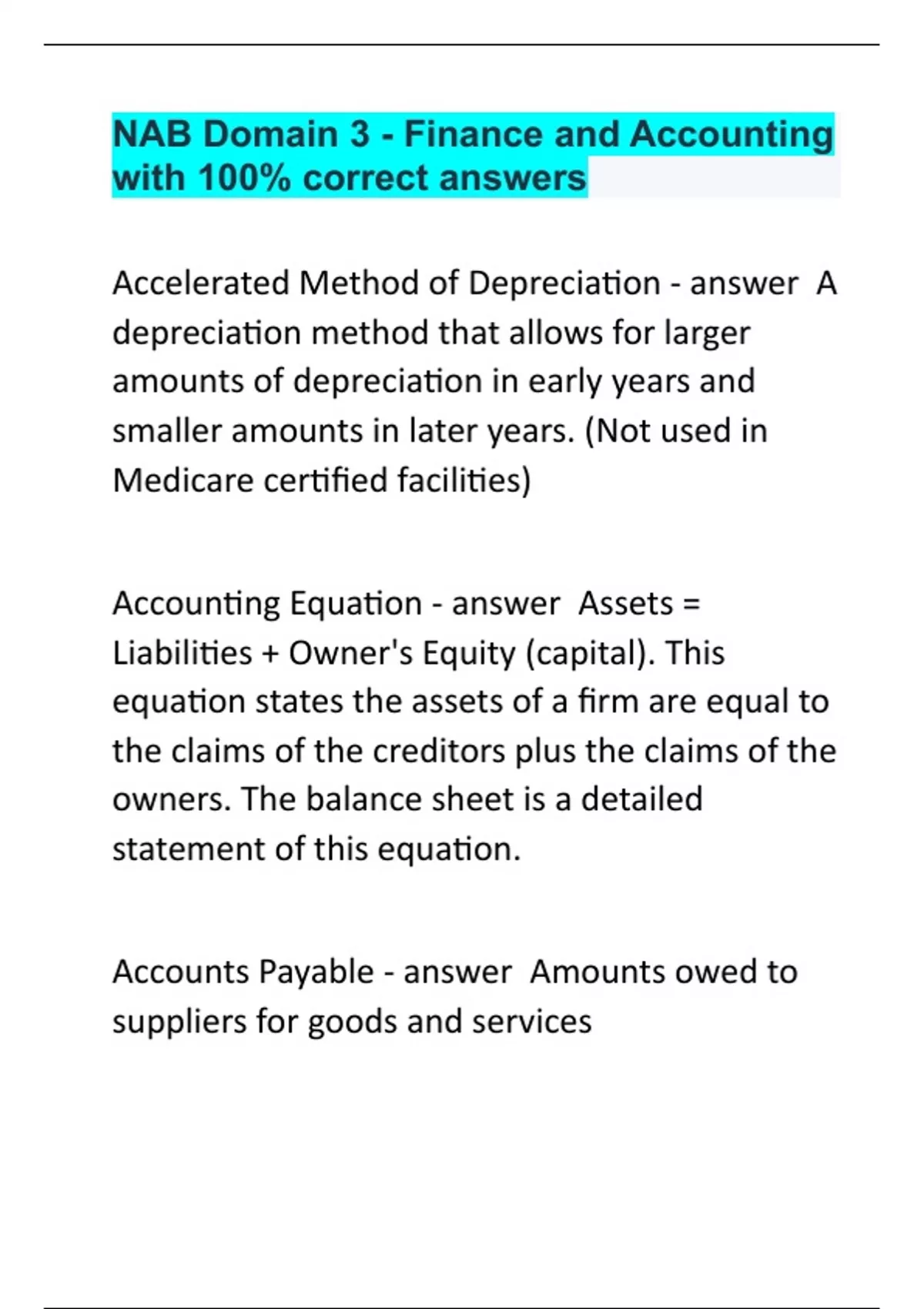 NAB Domain 3 - Finance and Accounting with 100% correct answers
