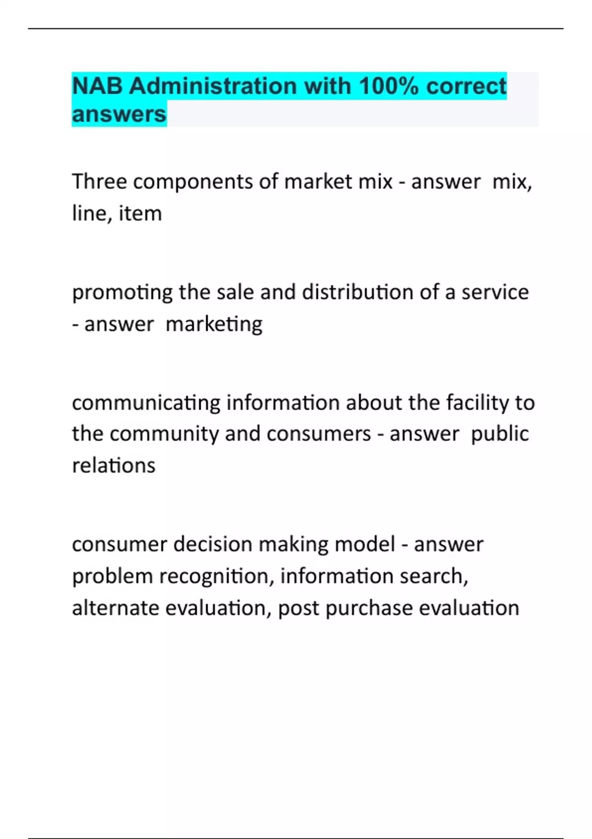 Three components of market mix mix, line, item promoting the sale and distribution of a service marketing communicating information about the facility to the community and consumers public relations consumer decision making model problem recognition, information search, alternate evaluation, post purchase evaluation what four things are required for communication message must be sent, received, decoded and understood active listening listening intently with empathy and acceptance an event that can lead to financial loss or damage risk what act holds employers directly financially responsible for injuries to employees federal employer liability act Under what is the facility responsible for damage caused by employees to others respondeat superior Level 1 deficiency no more than minor negative impact Level 2 deficiency Minimal physical, mental or psychological discomfort Level 3 deficiency Compromised the residents ability to maintain highest practical level of functioning Level 4 deficiency Risk of immediate injury, harm or impairment or death to a resident