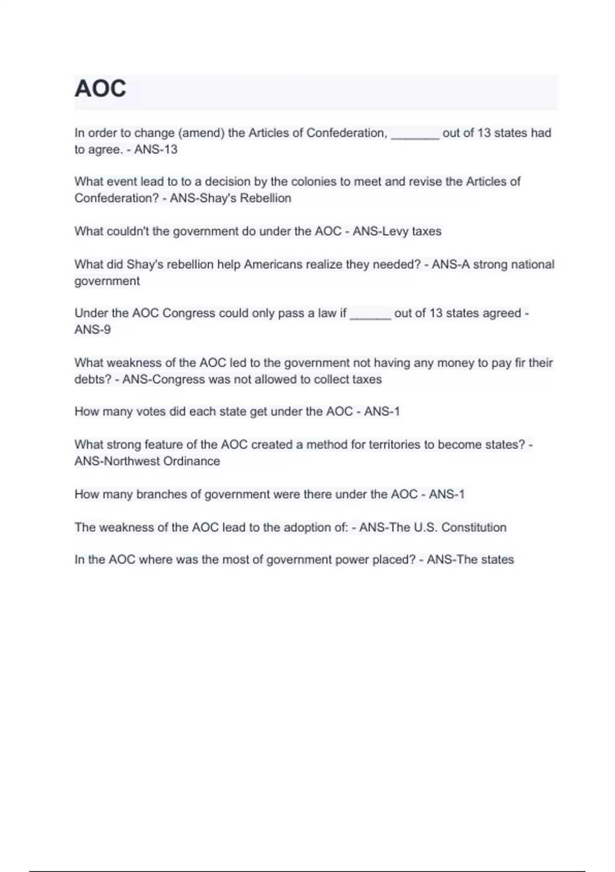 AOC with 100% correct answers | verified | latest
