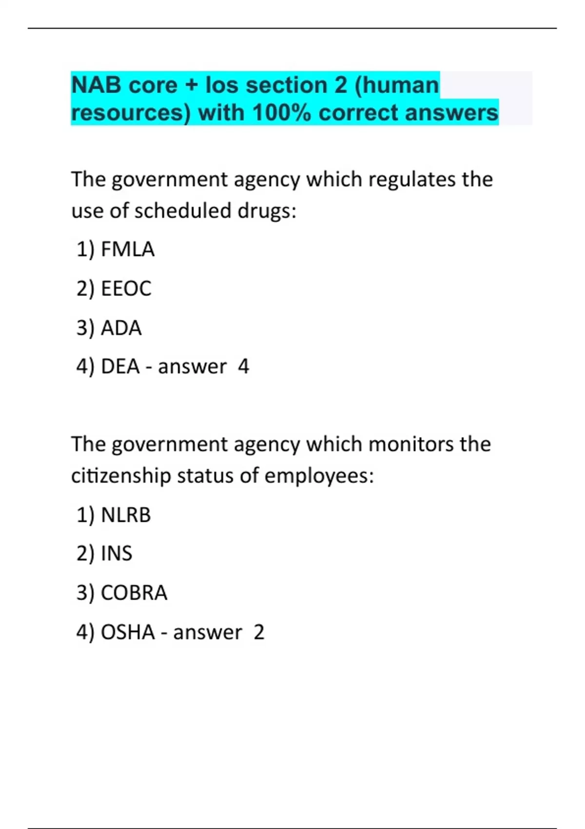 NAB core + los section 2 (human resources) with 100% correct answers