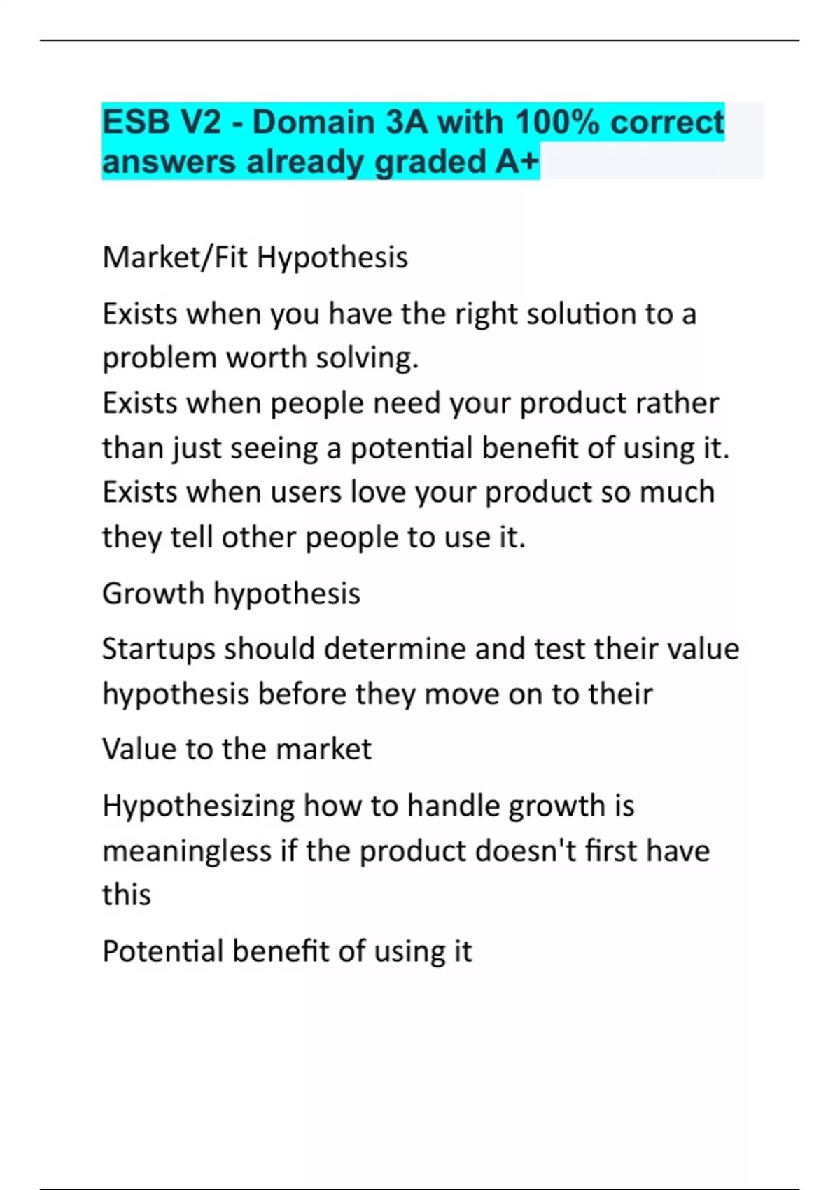 ESB V2 - Domain 3A with 100% correct answers already graded A+.