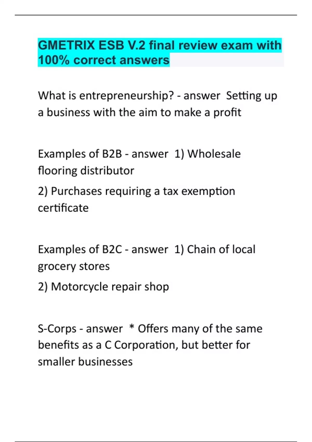 GMETRIX ESB V.2 final review exam with 100% correct answers