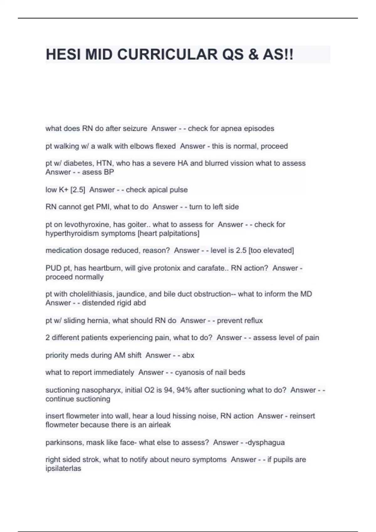 HESI MID CURRICULAR QS & AS!!