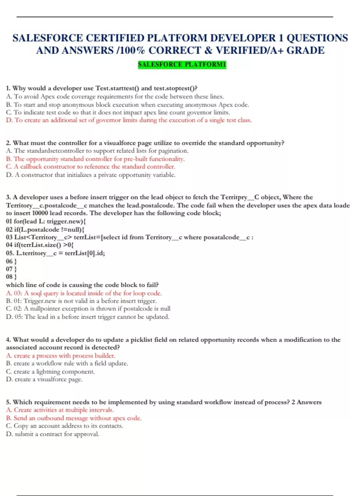 SALESFORCE CERTIFIED PLATFORM DEVELOPER 1 QUESTIONS AND ANSWERS /100% CORRECT & VERIFIED/A+ GRADE