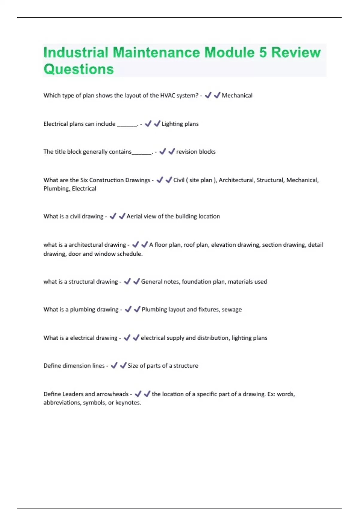 Industrial Maintenance Module 5 Review Questions and Answers 100% Solved correctly
