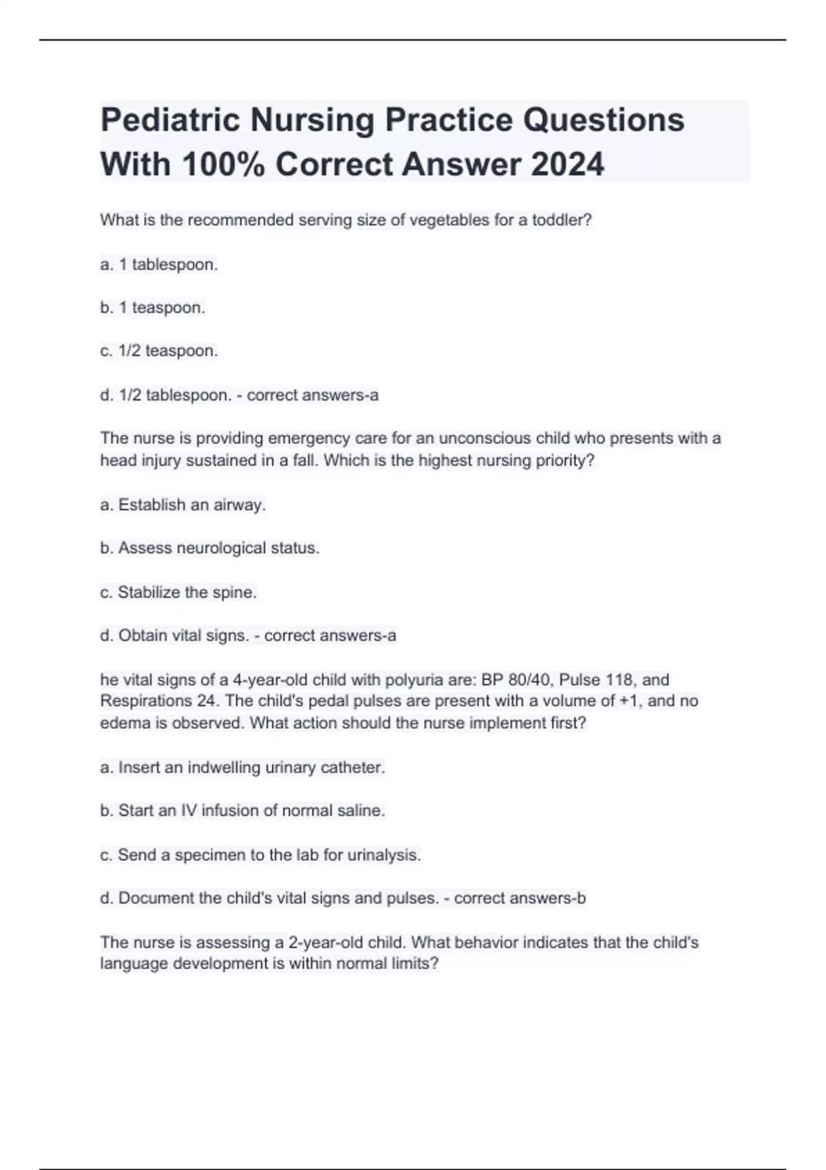 Pediatric Nursing Practice Questions With 100% Correct Answer 2024