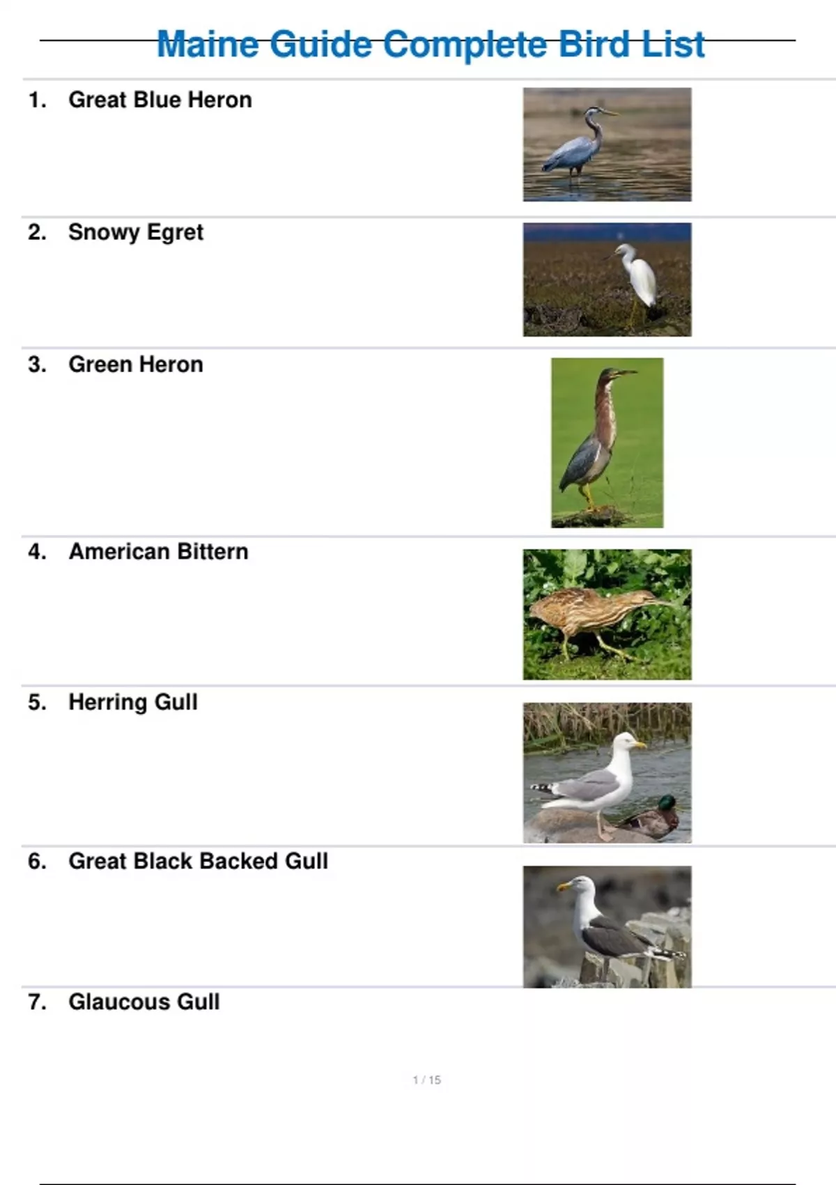Maine Guide Complete Bird List