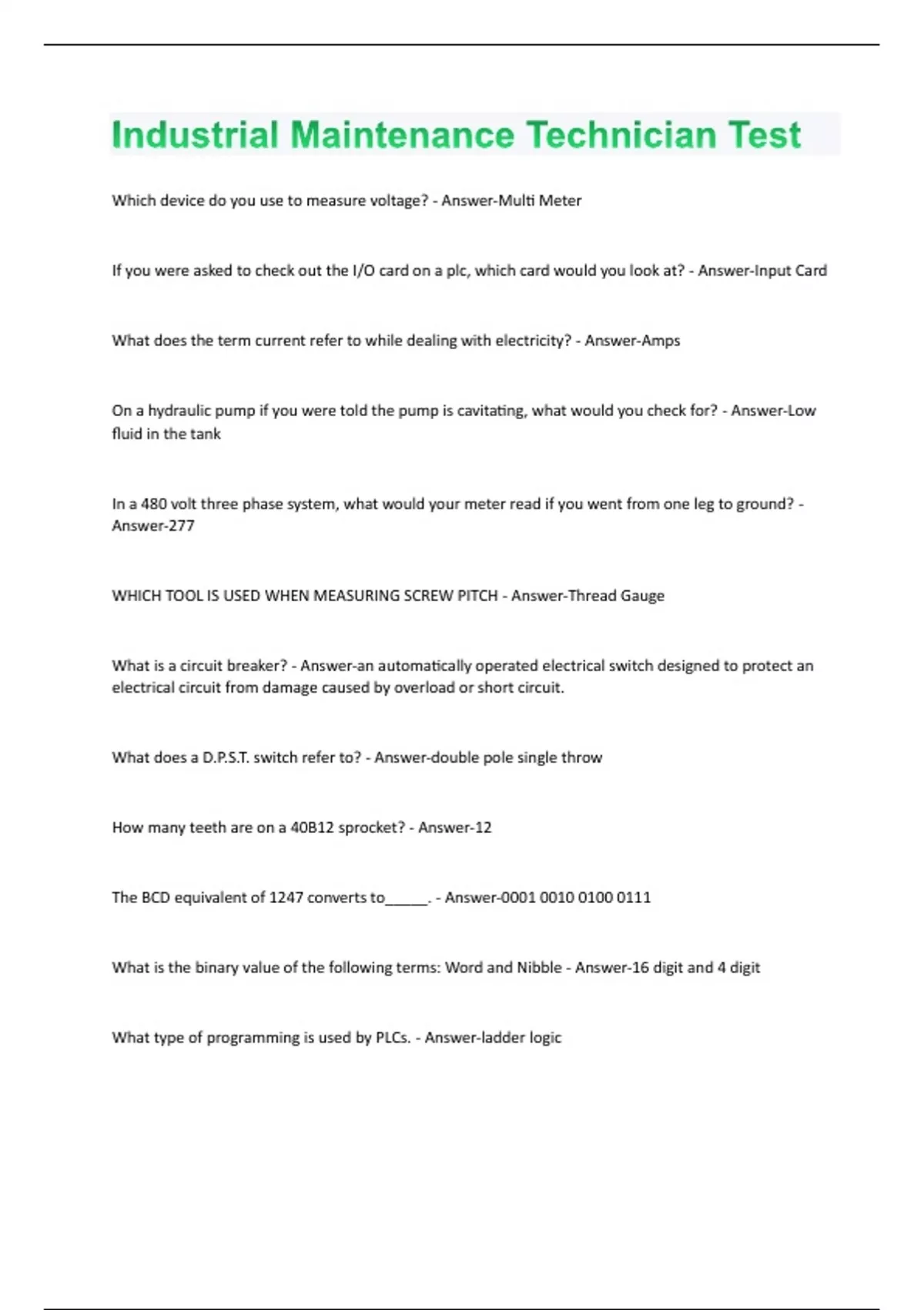 Industrial Maintenance Technician Test Questions and Answers(A+ Solution guide)