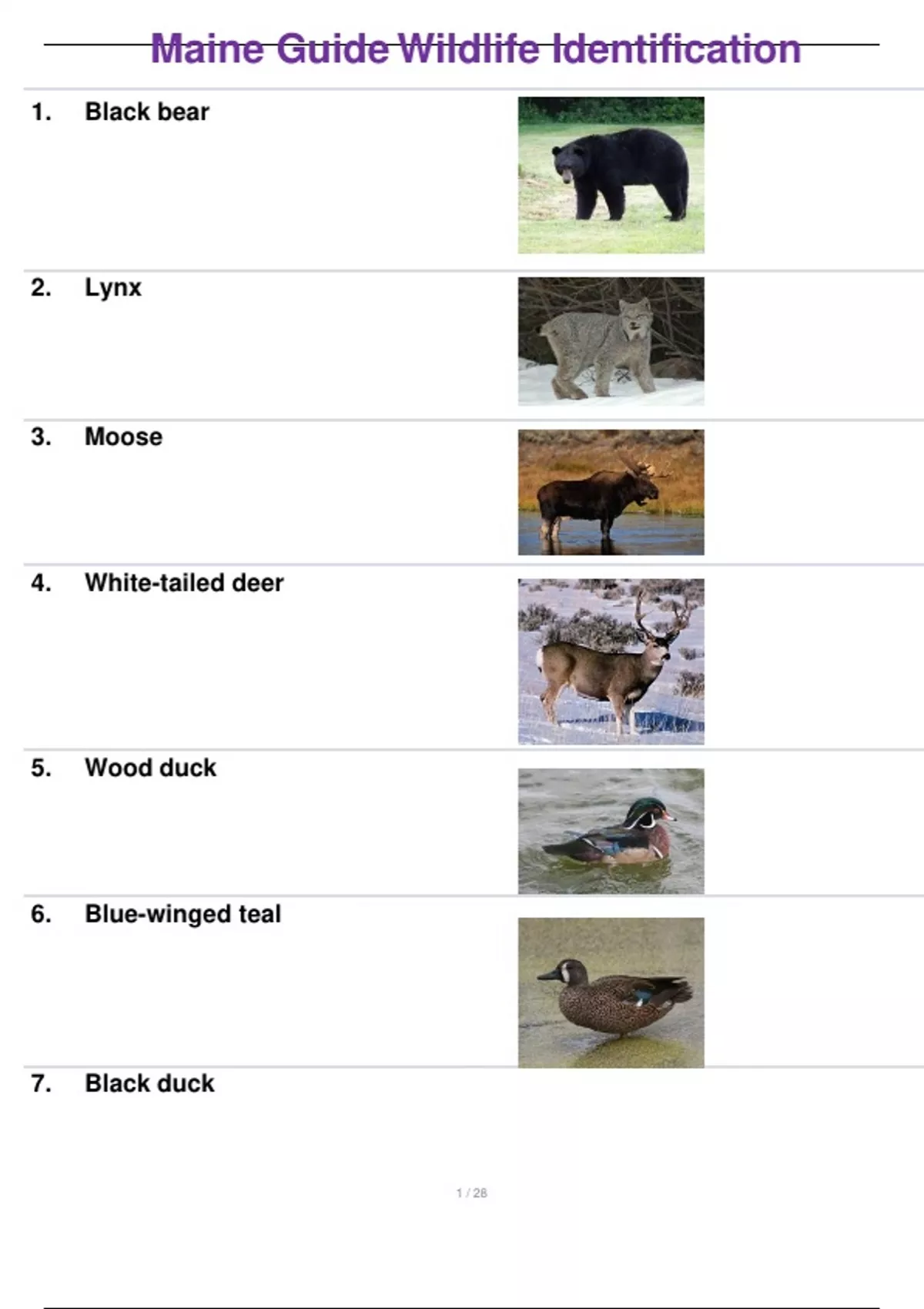 - Maine Wildlife Identification