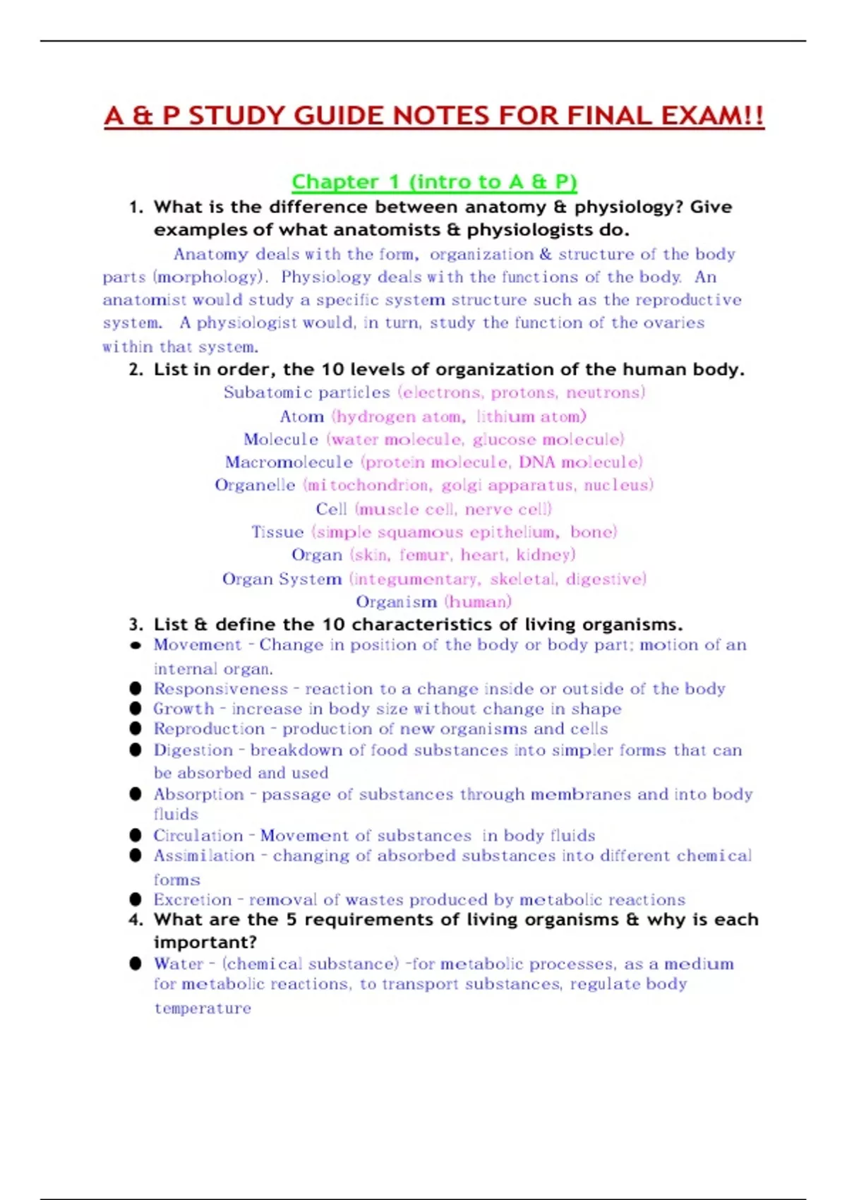 A & P STUDY GUIDE NOTES FOR FINAL EXAM!!