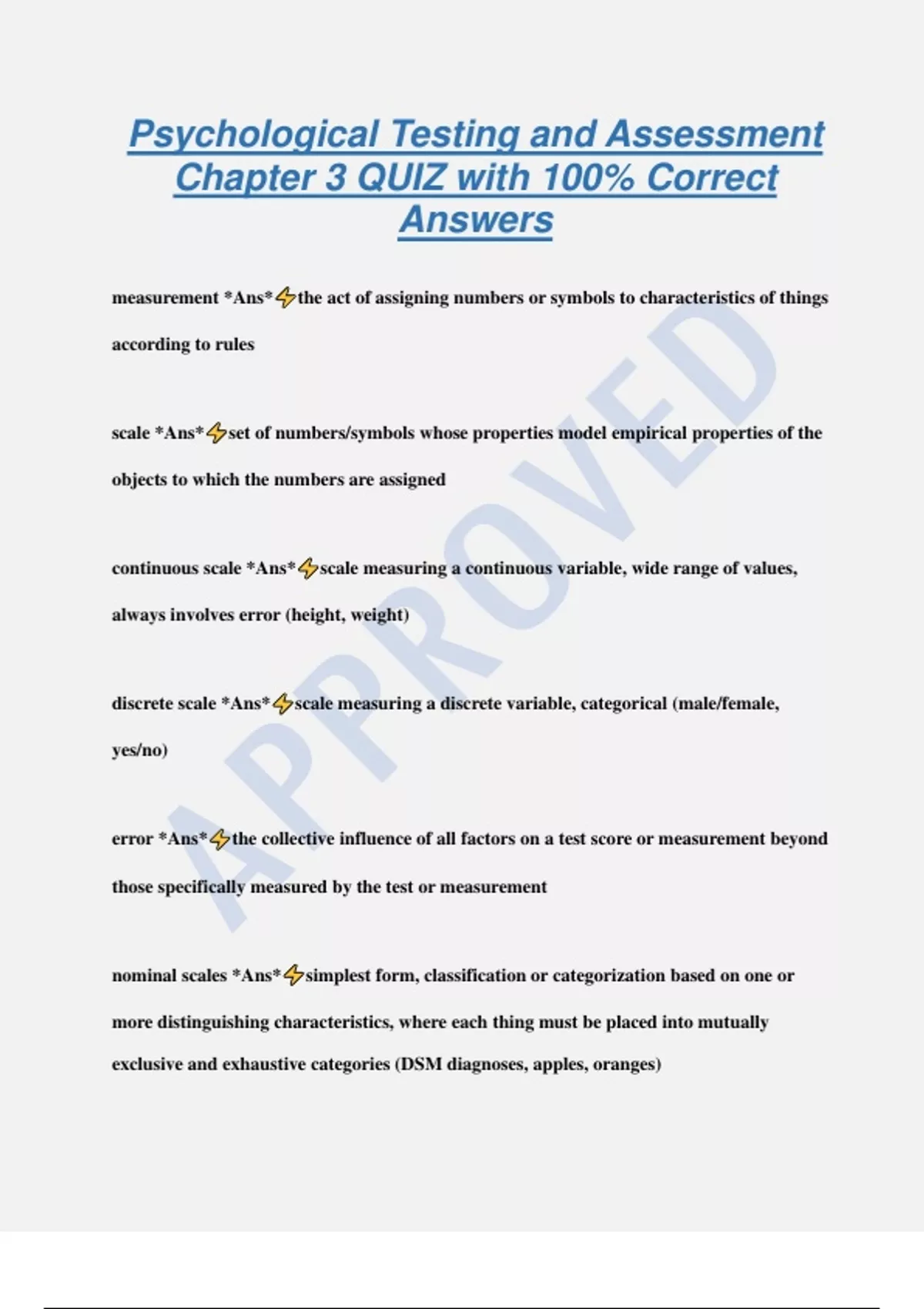 Psychological Testing and Assessment Chapter 3 QUIZ with 100% Correct Answers