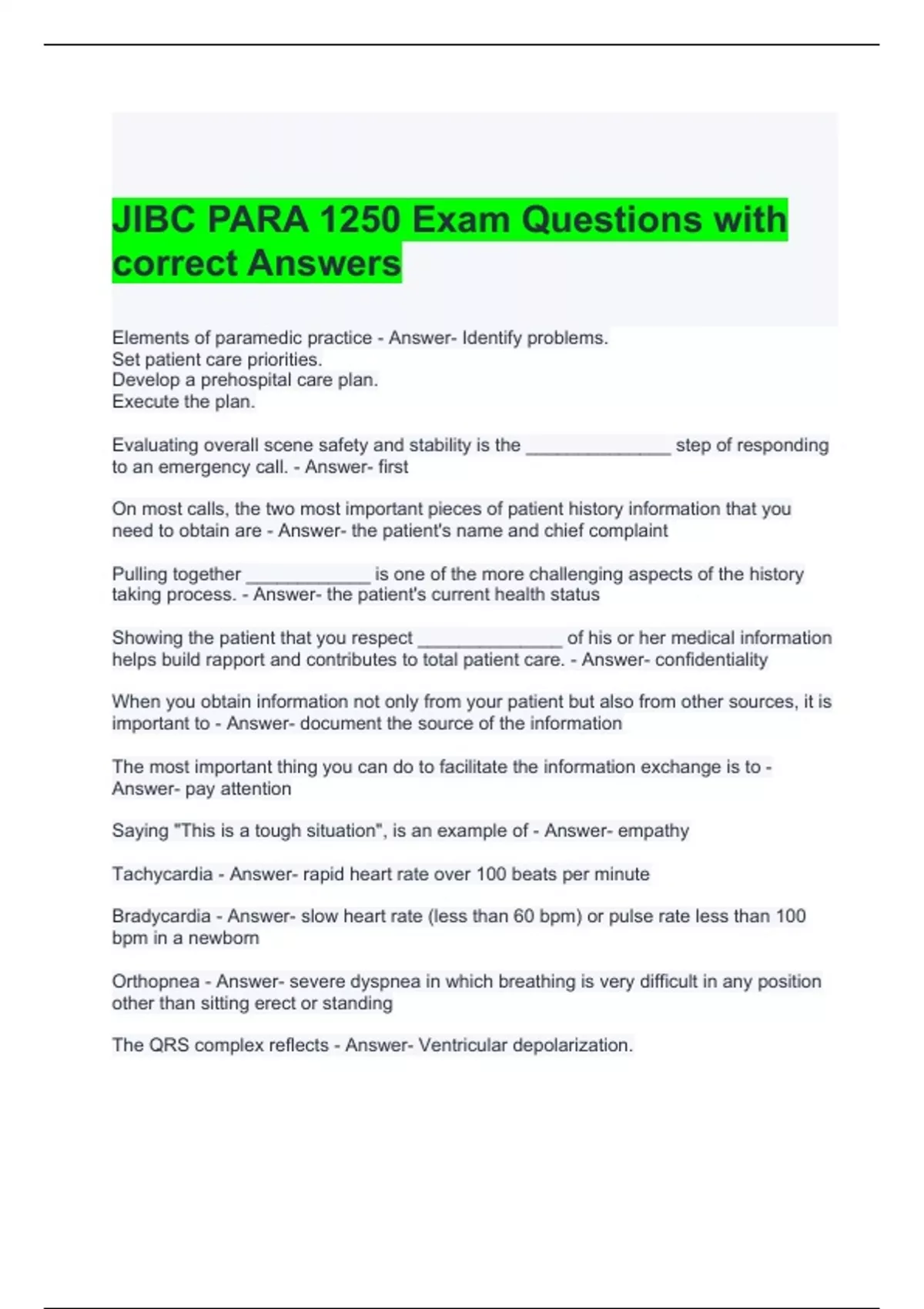 JIBC PARA 1250 Exam Questions with correct Answers 100%