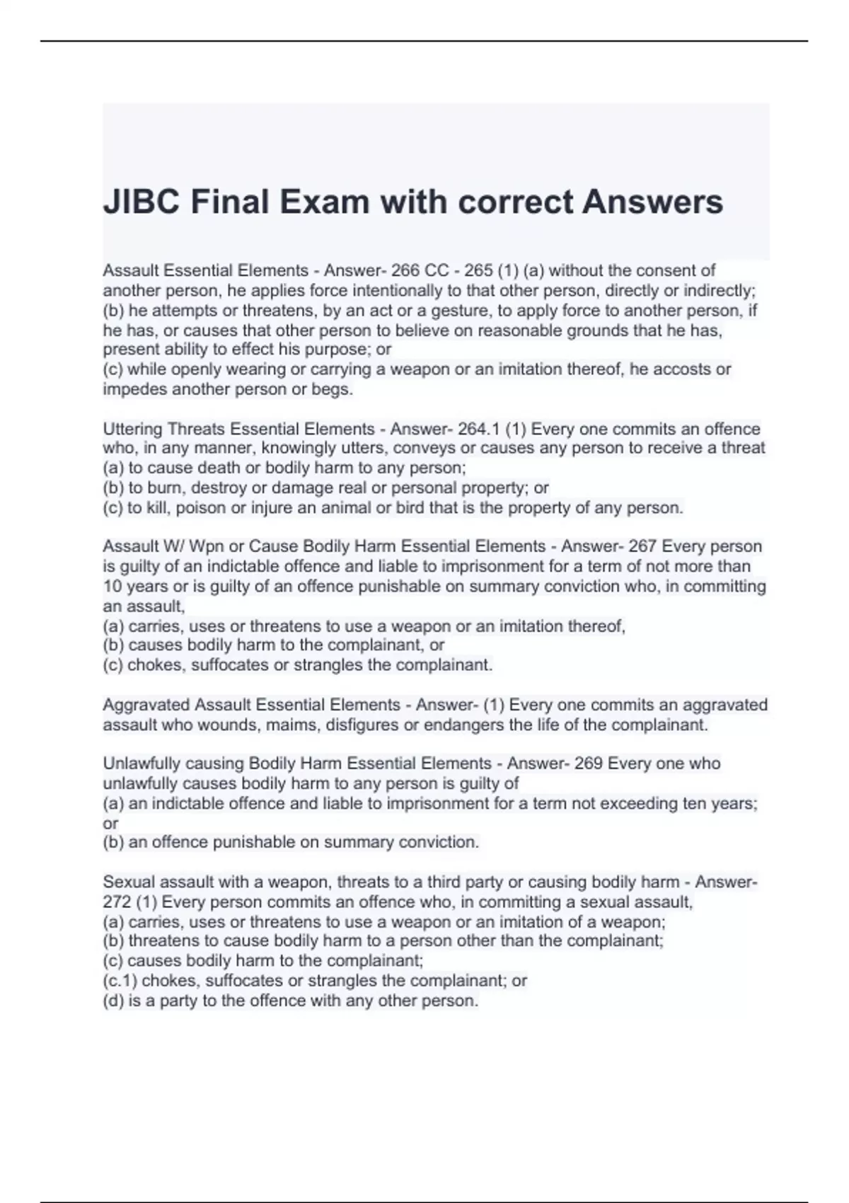 jibc final exam with correct answers