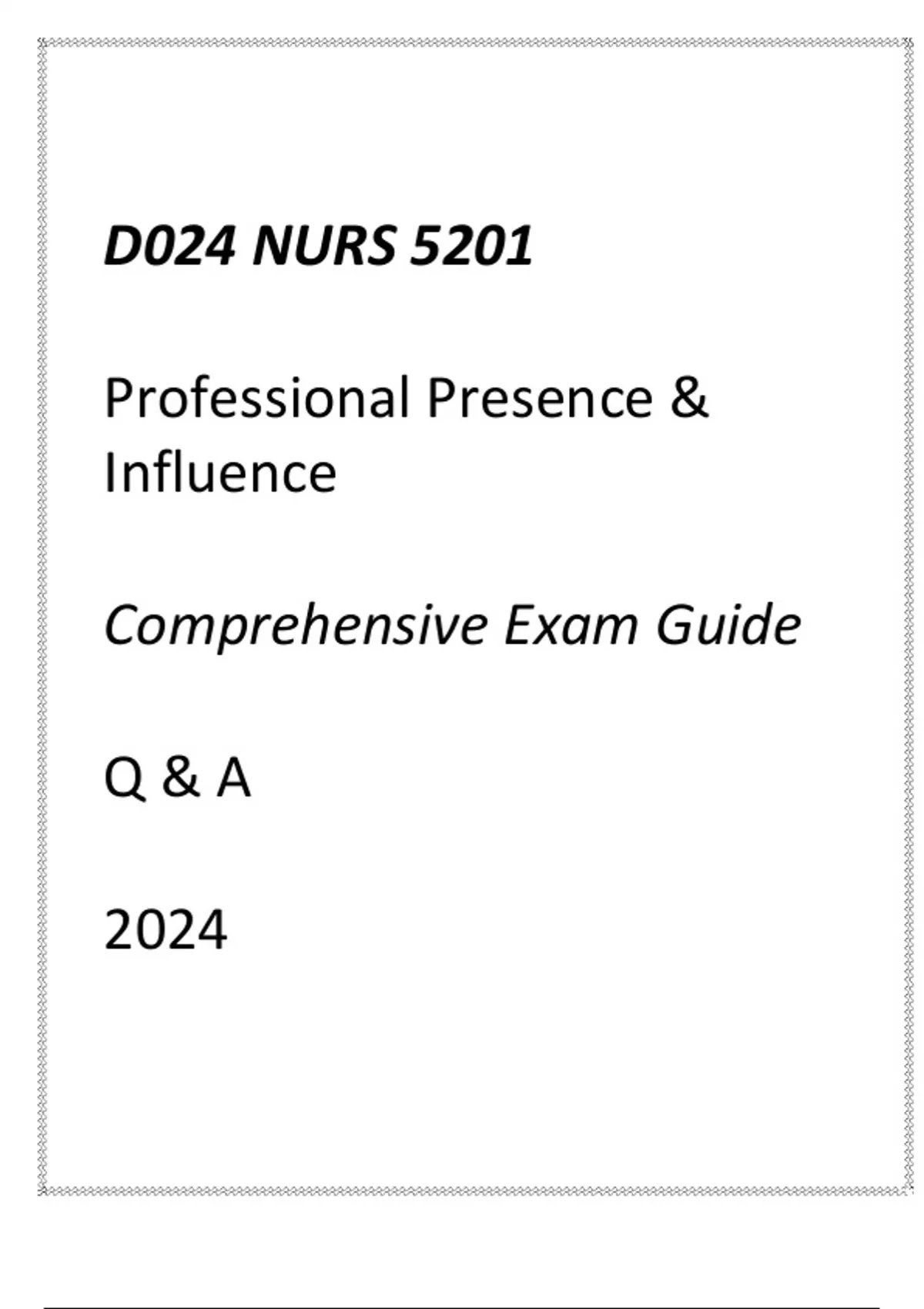 (WGU D024) NURS 5201 PROFESSIONAL PRESENCE & INFLUENCE COMPREHENSIVE EXAM GUIDE(WGU D024) NURS 5201 PROFESSIONAL PRESENCE & INFLUENCE COMPREHENSIVE EXAM GUIDE(WGU D024) NURS 5201 PROFESSIONAL PRESENCE & INFLUENCE COMPREHENSIVE EXAM GUIDE