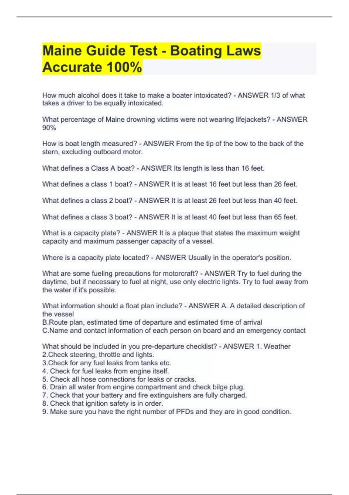 What defines a Class A boat? - ANSWER Its length is less than 16 feet.