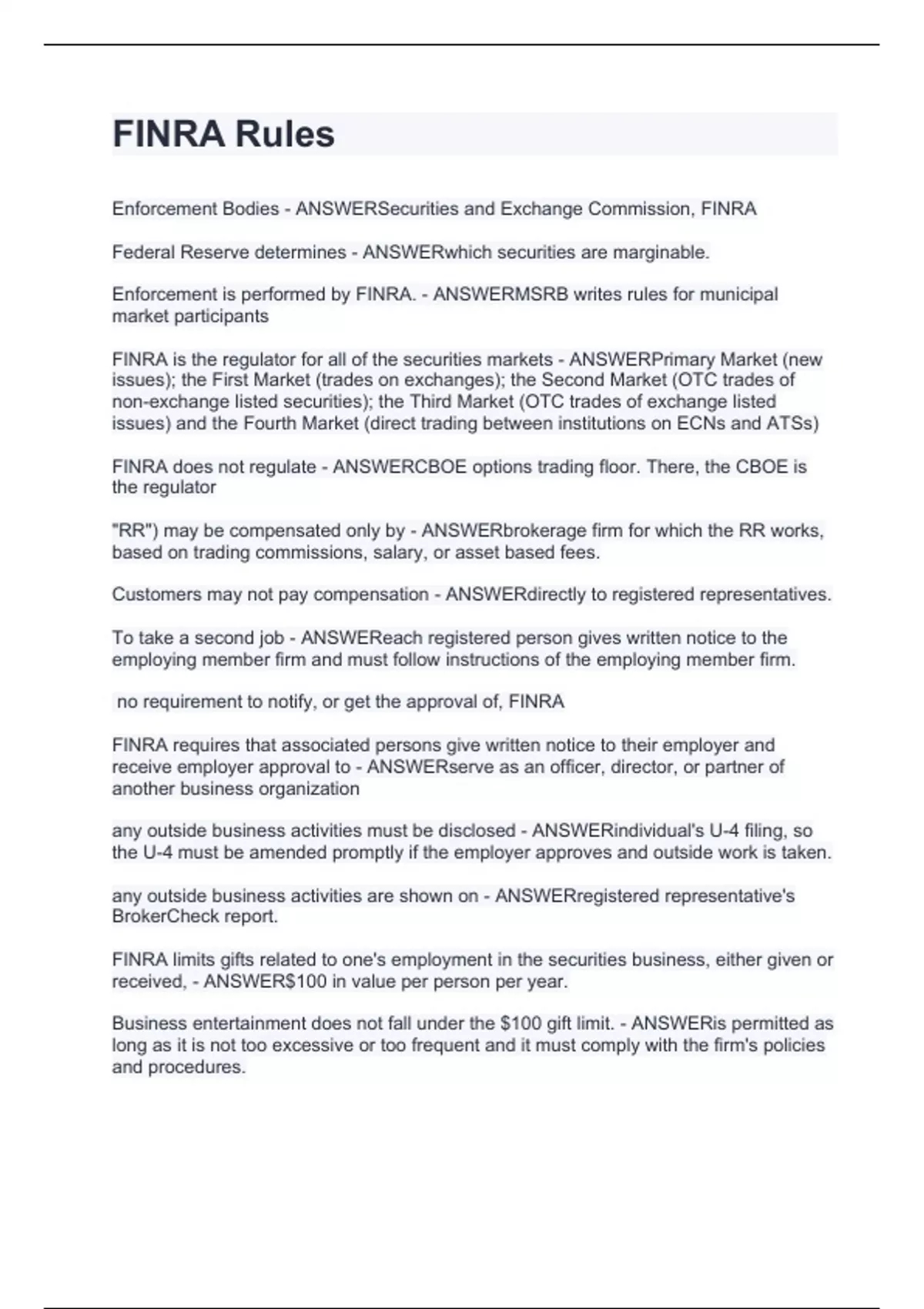 Exam of 16 pages for the course FINRA at FINRA (FINRA Rules.)