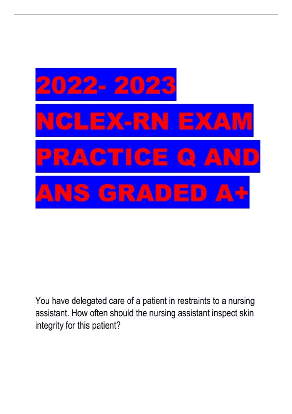 NCLEX-RN EXAM PRACTICE Q AND ANS GRADED A+