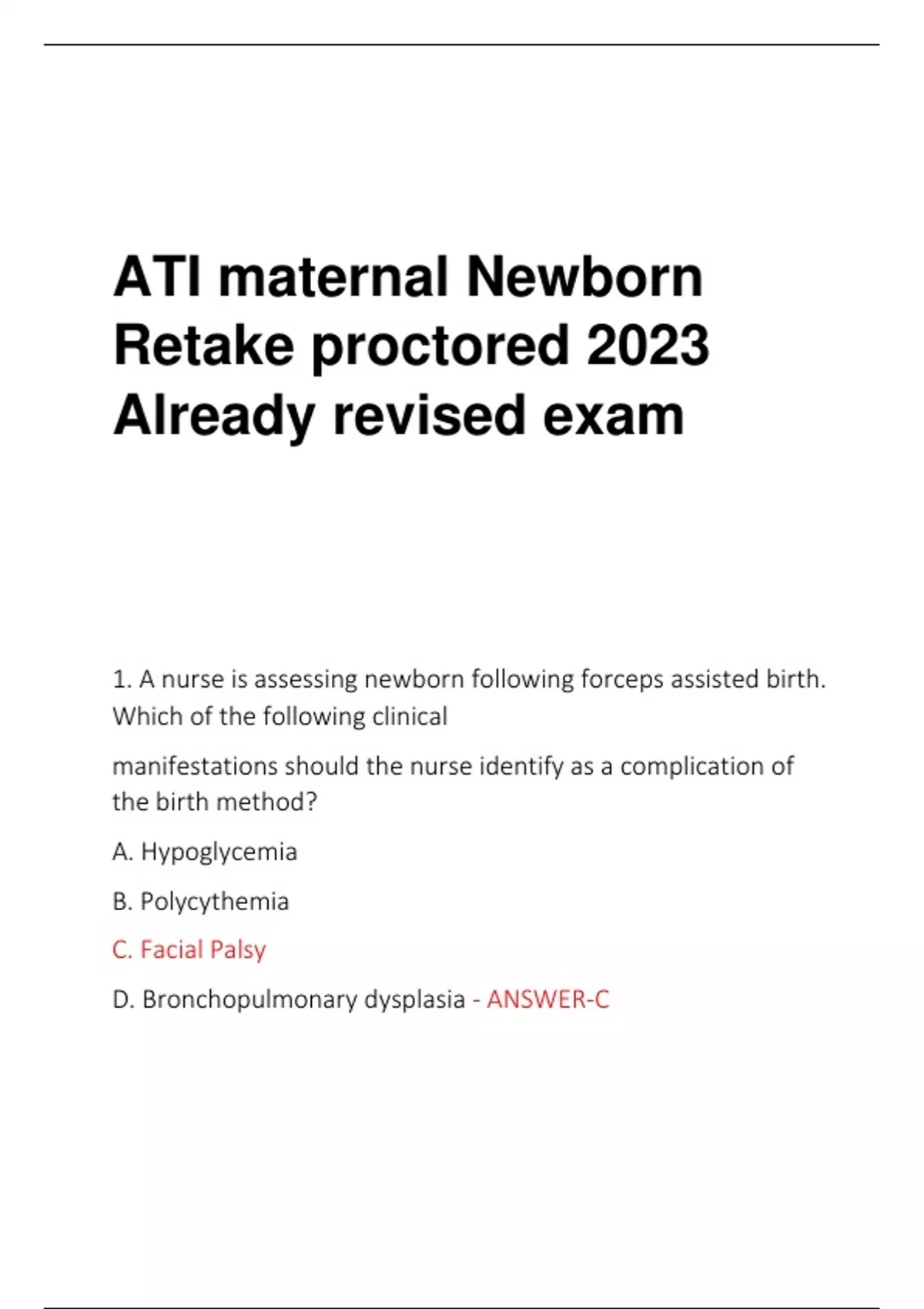 ATI maternal Newborn Retake proctored 2023 Already revised exam