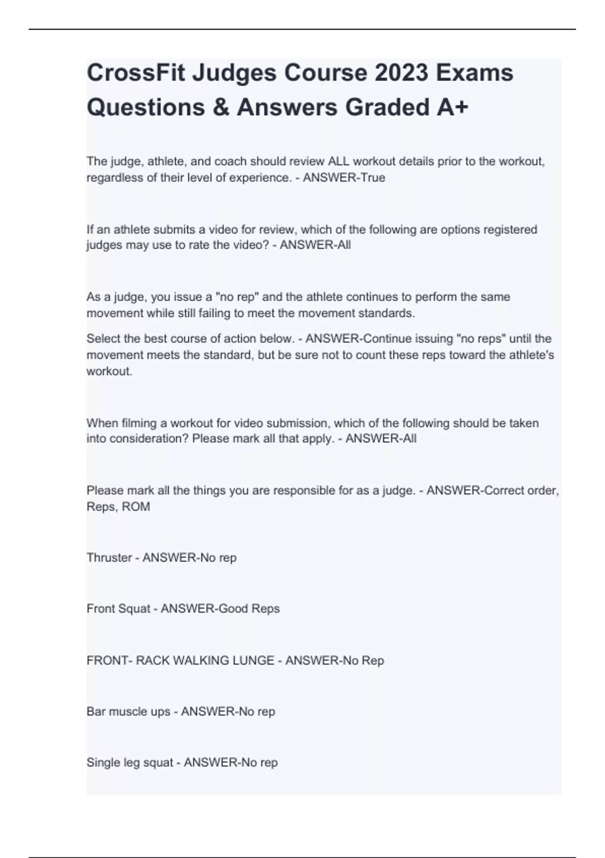 CrossFit Judges Course 2023 Exams Questions & Answers Graded A+