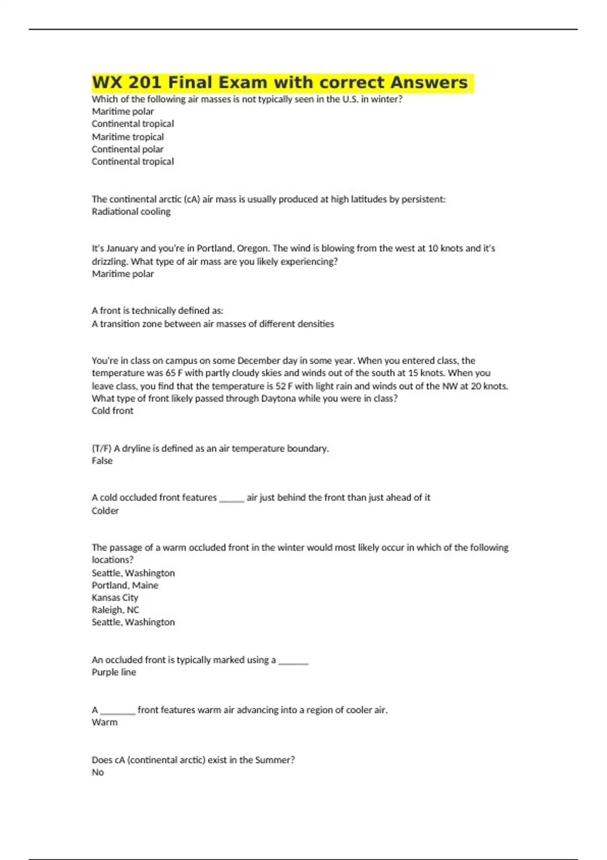 Which of the following air masses is not typically seen in the U.S. in winter?