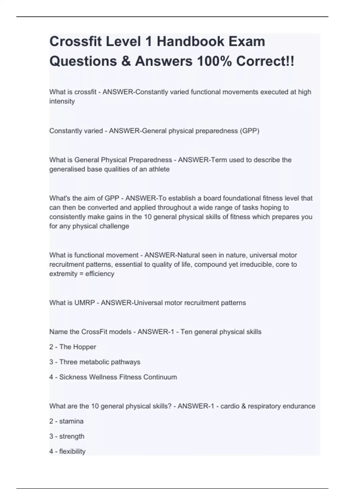 Crossfit Level 1 Handbook Exam Questions & Answers 100% Correct!!