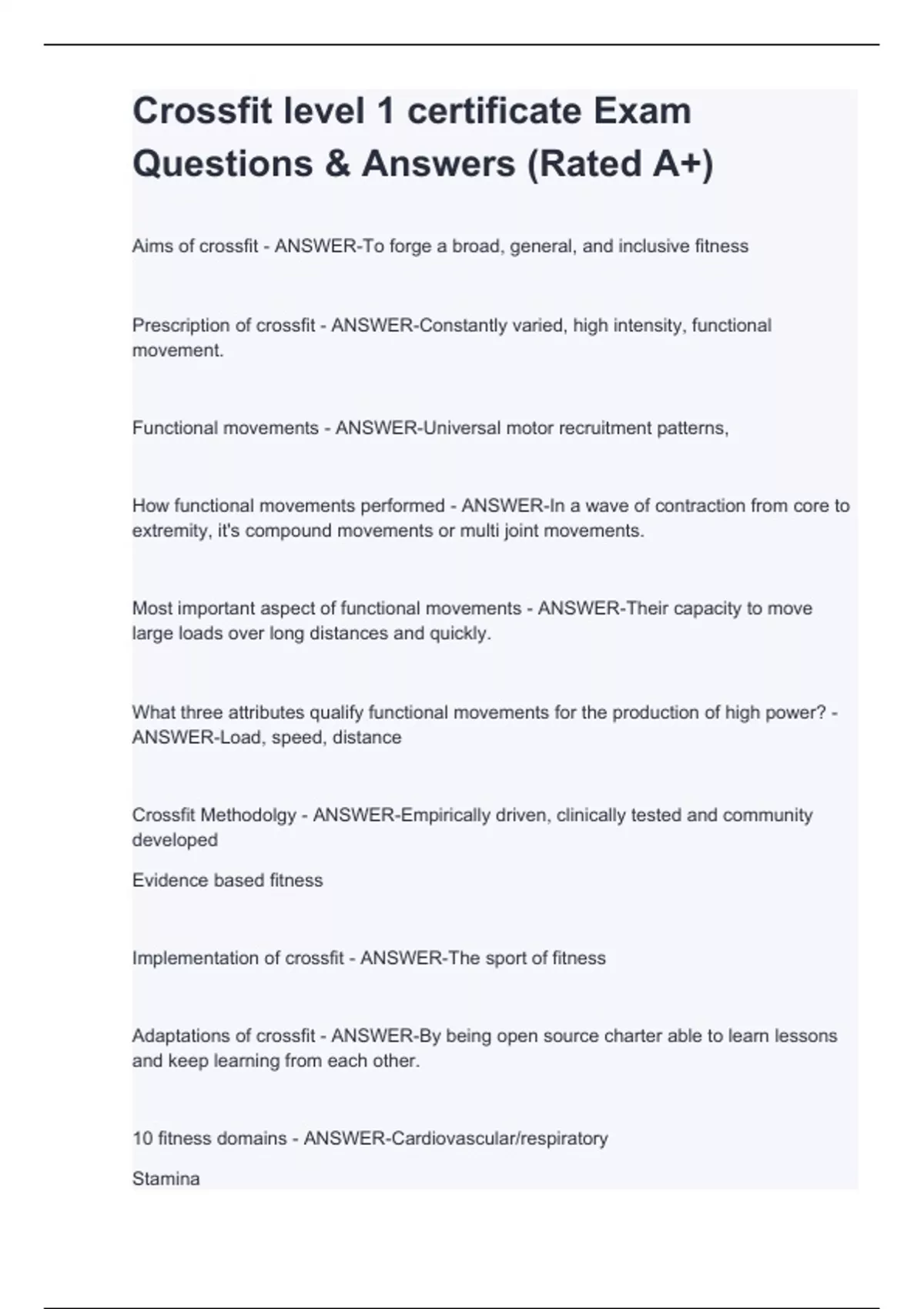 crossfit level 1 certificate exam questions stuvia