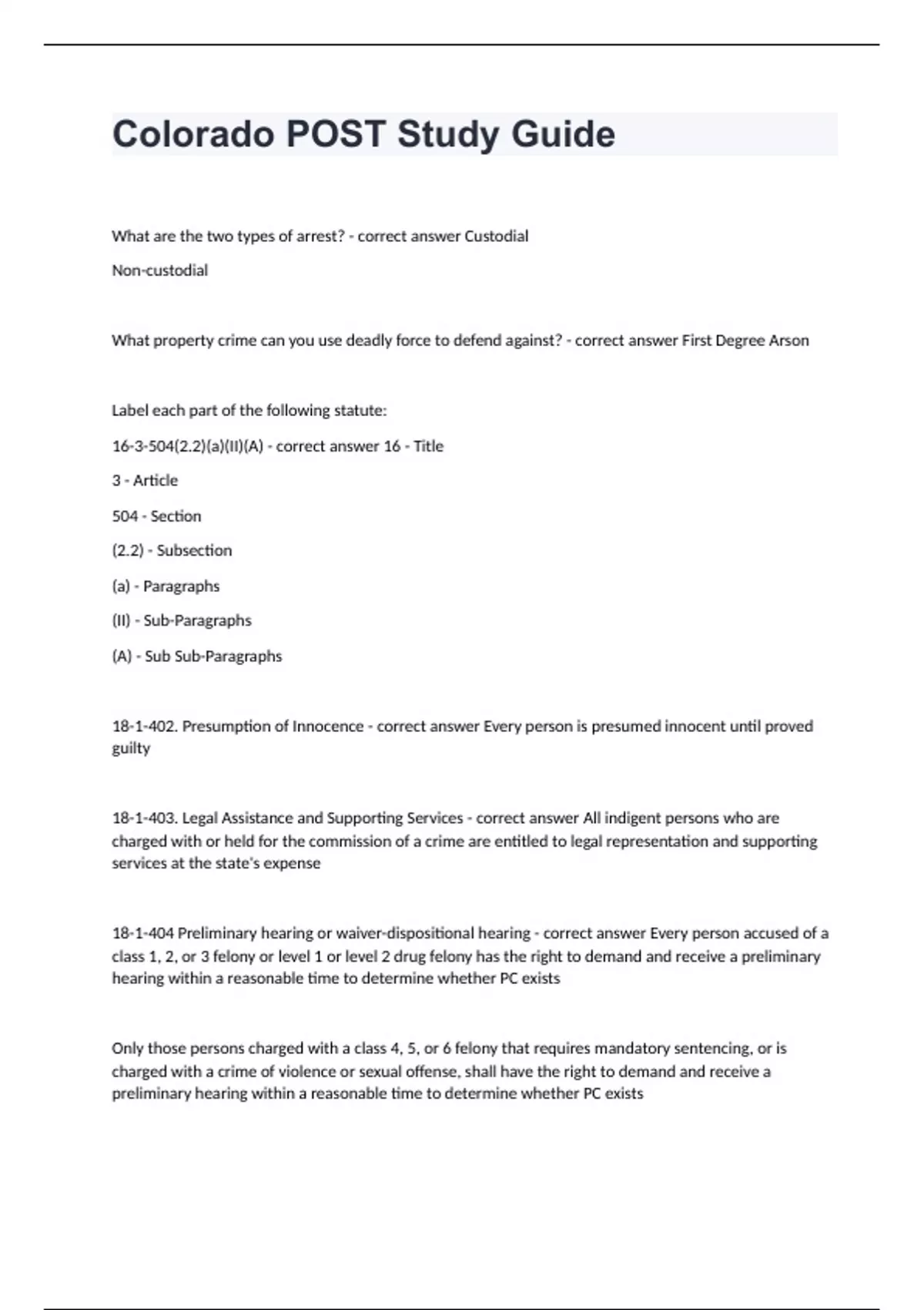 Colorado POST Study Guide questions and answers certified 2024