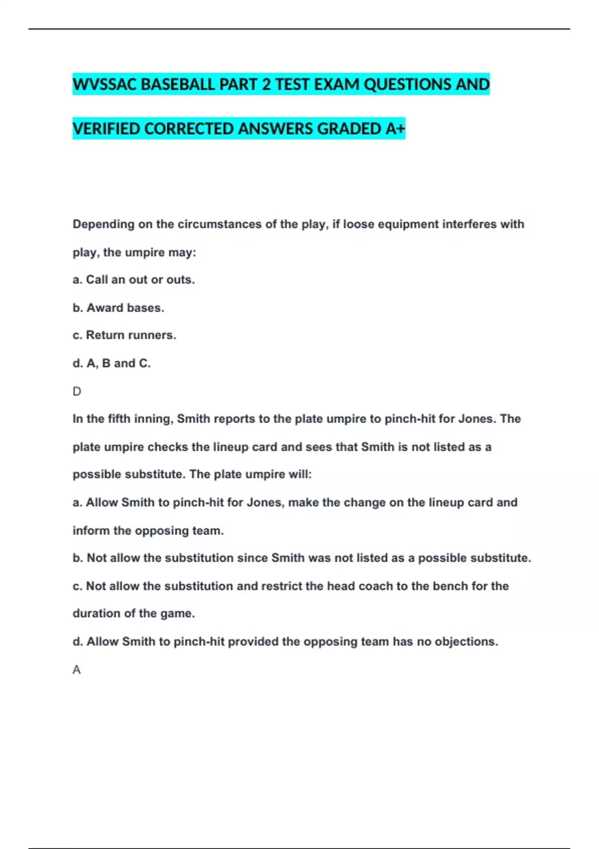 VERIFIED CORRECTED ANSWERS GRADED A+