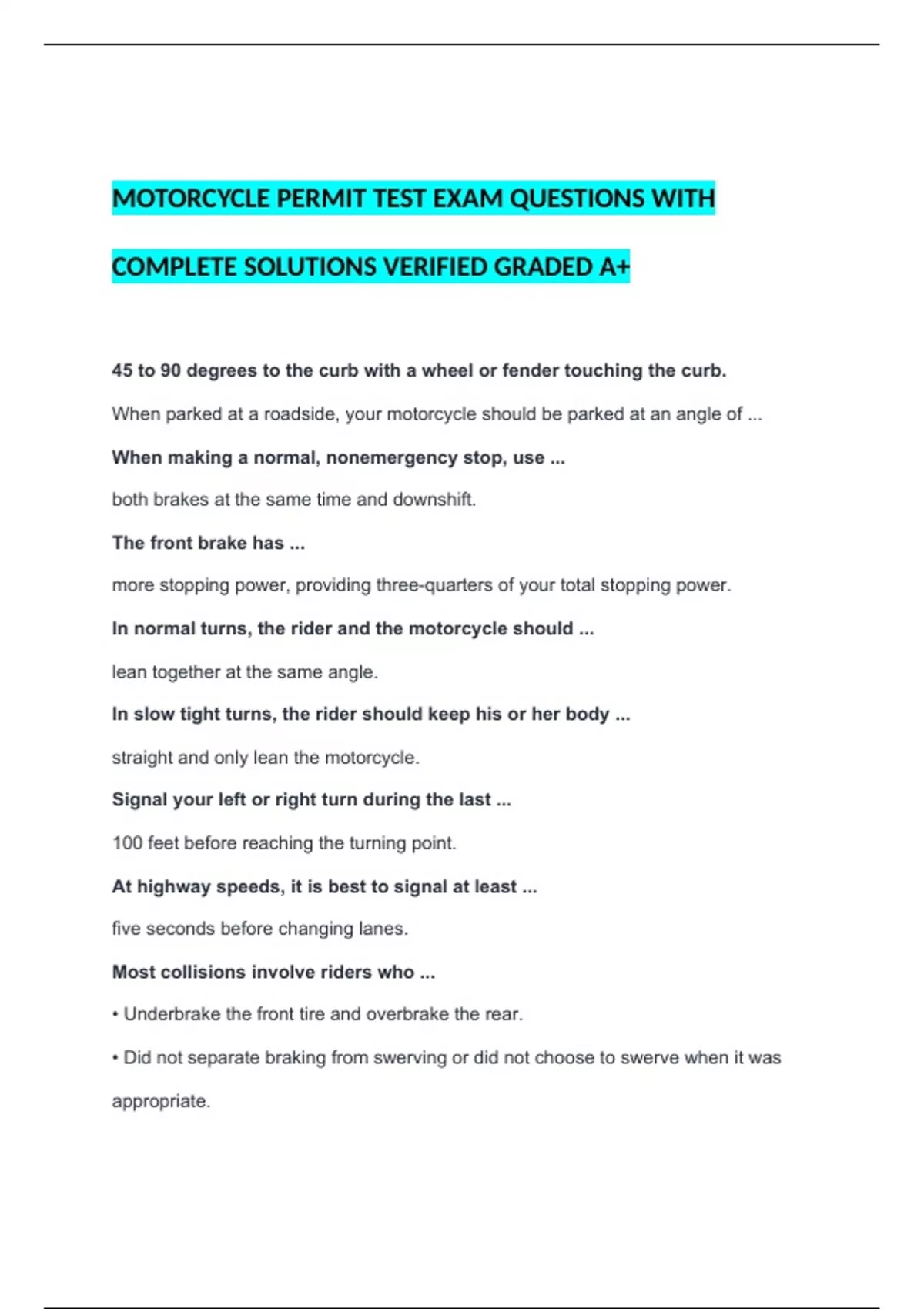 To execute a turn safely, a motorcycle rider should always ...