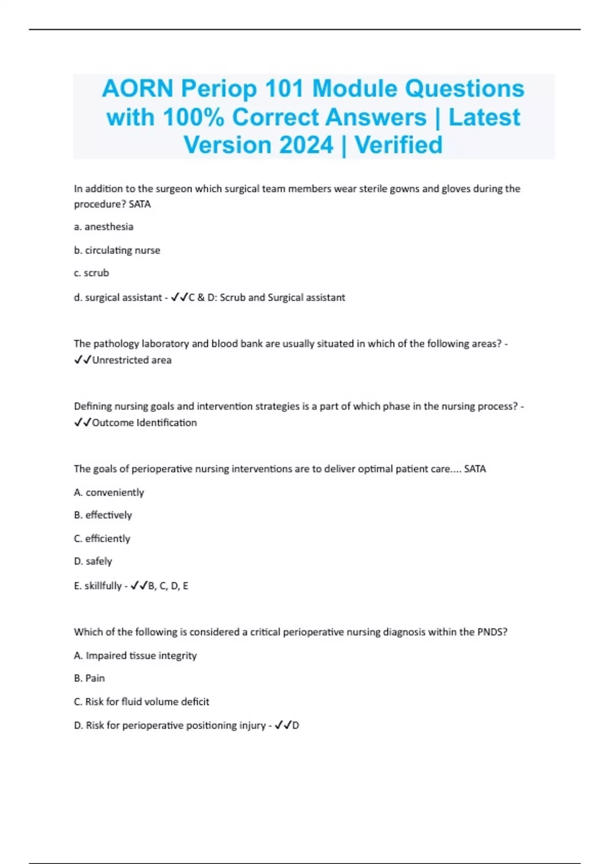 AORN Periop 101 Module Questions with 100% Correct Answers | Latest Version 2024 | Verified
