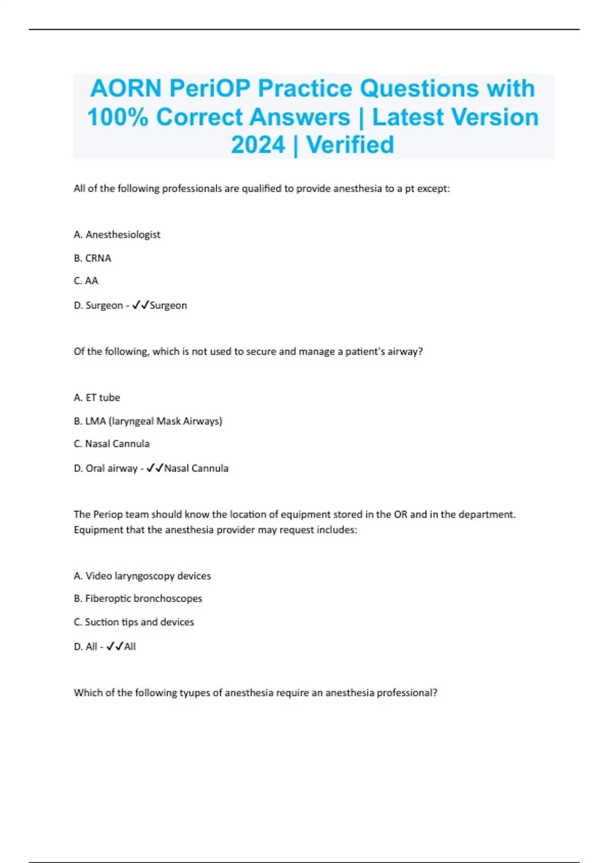 AORN PeriOP Practice Questions with 100% Correct Answers | Latest Version 2024 | Verified