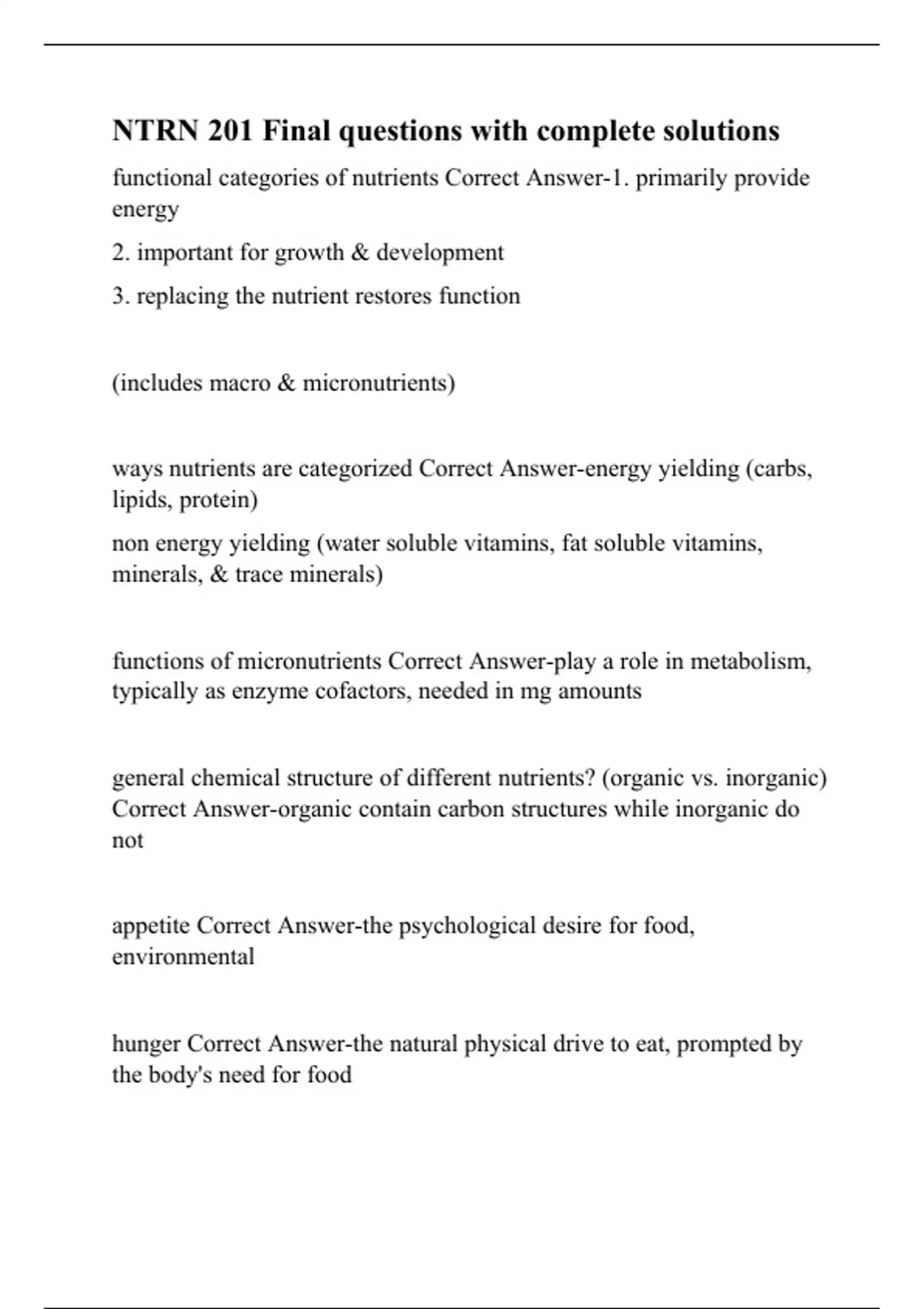 NTRN 201 Case Western Reserve University -NTRN 201 Final questions with complete solution1