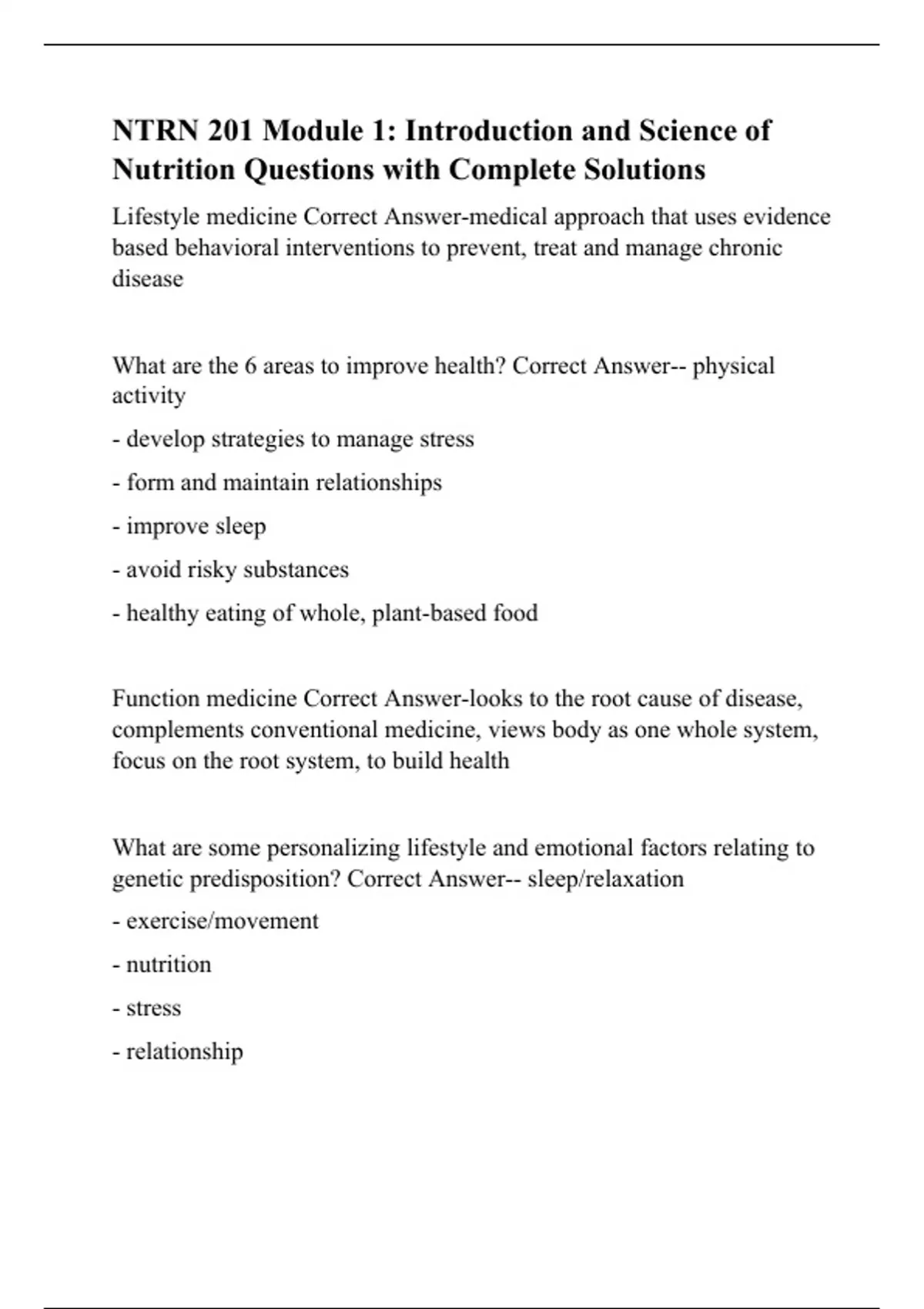 NTRN 201 Case Western Reserve University - NTRN 201 Module 1: Introduction and Science of Nutrition Questions with Complete Solutions