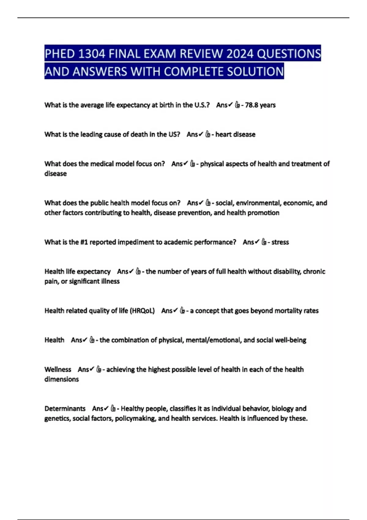PHED 1304 FINAL EXAM REVIEW 2024 QUESTIONS AND ANSWERS WITH COMPLETE SOLUTION