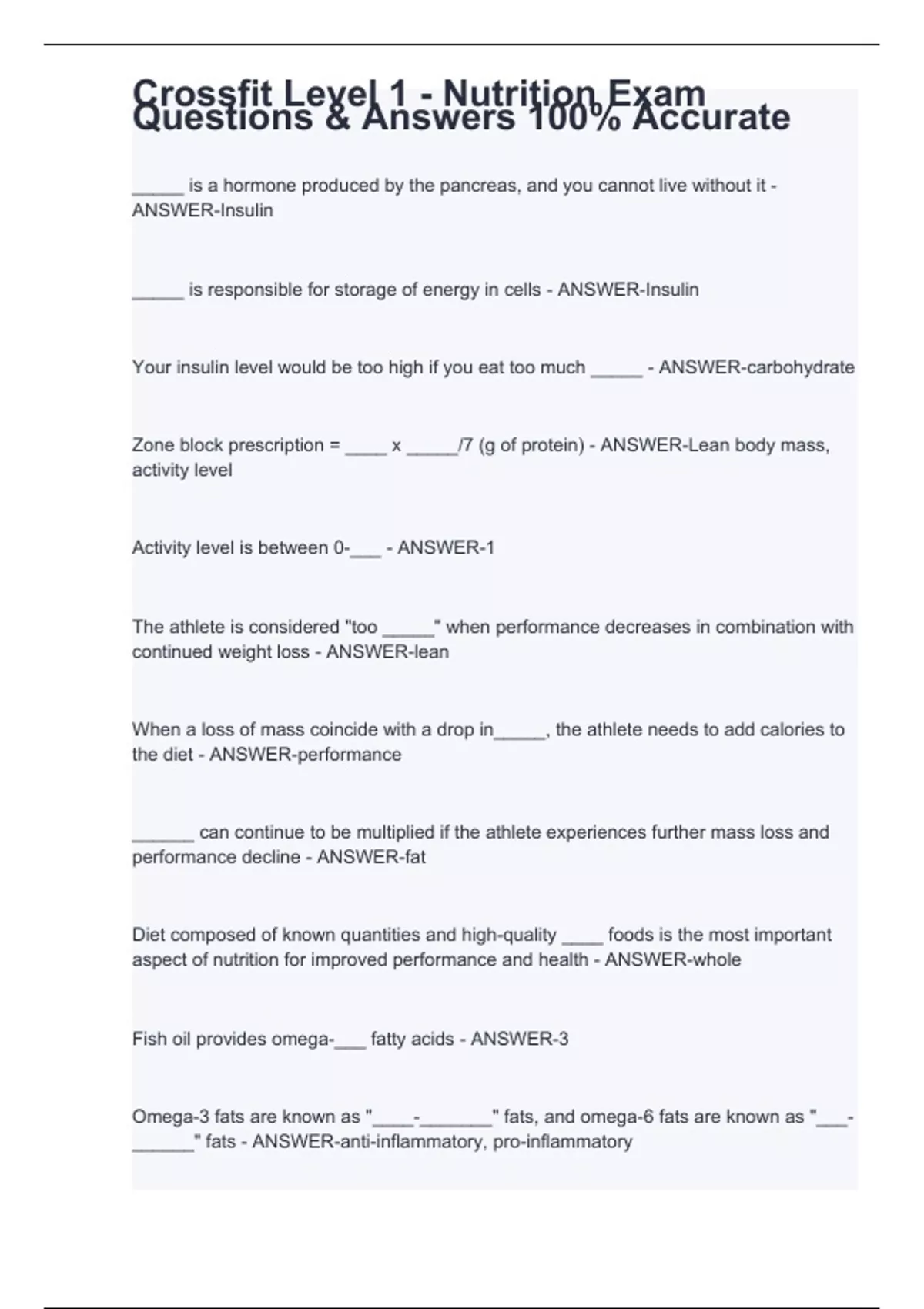 Crossfit Level 1 - Nutrition Exam Questions & Answers 100% Accurate