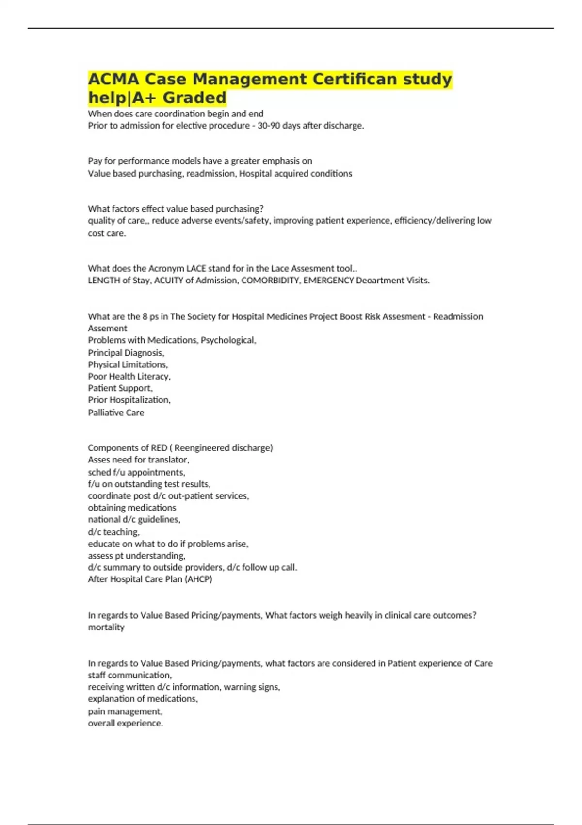 Value based purchasing, readmission, Hospital acquired conditions