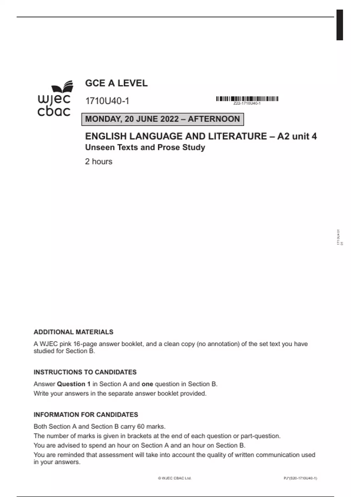 ENGLISH LANGUAGE AND LITERATURE – A2 unit 4 Unseen Texts and Prose Study