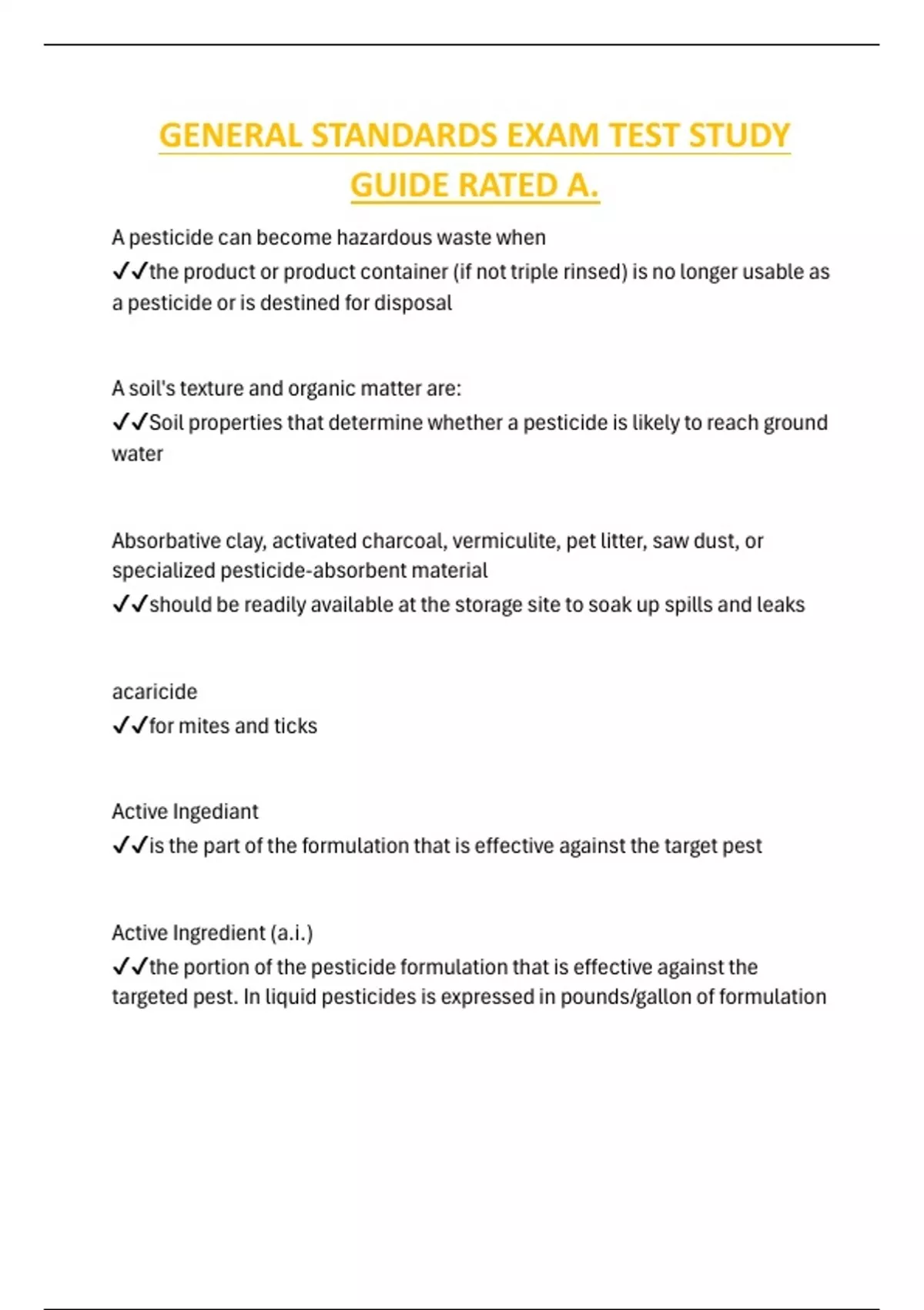 GENERAL STANDARDS EXAM TEST STUDY GUIDE RATED A.