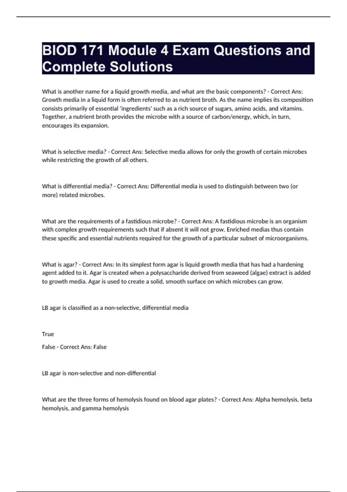 BIOD 171 Module 4 Exam Questions and Complete Solutions