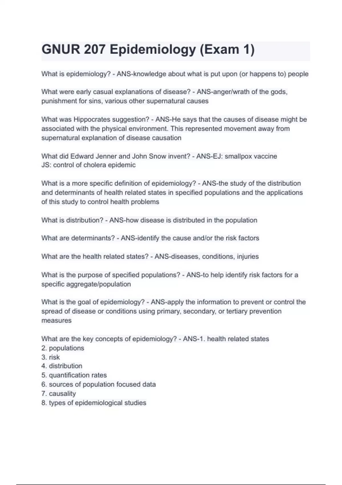 GNUR 207 Epidemiology (Exam 1) with complete solution