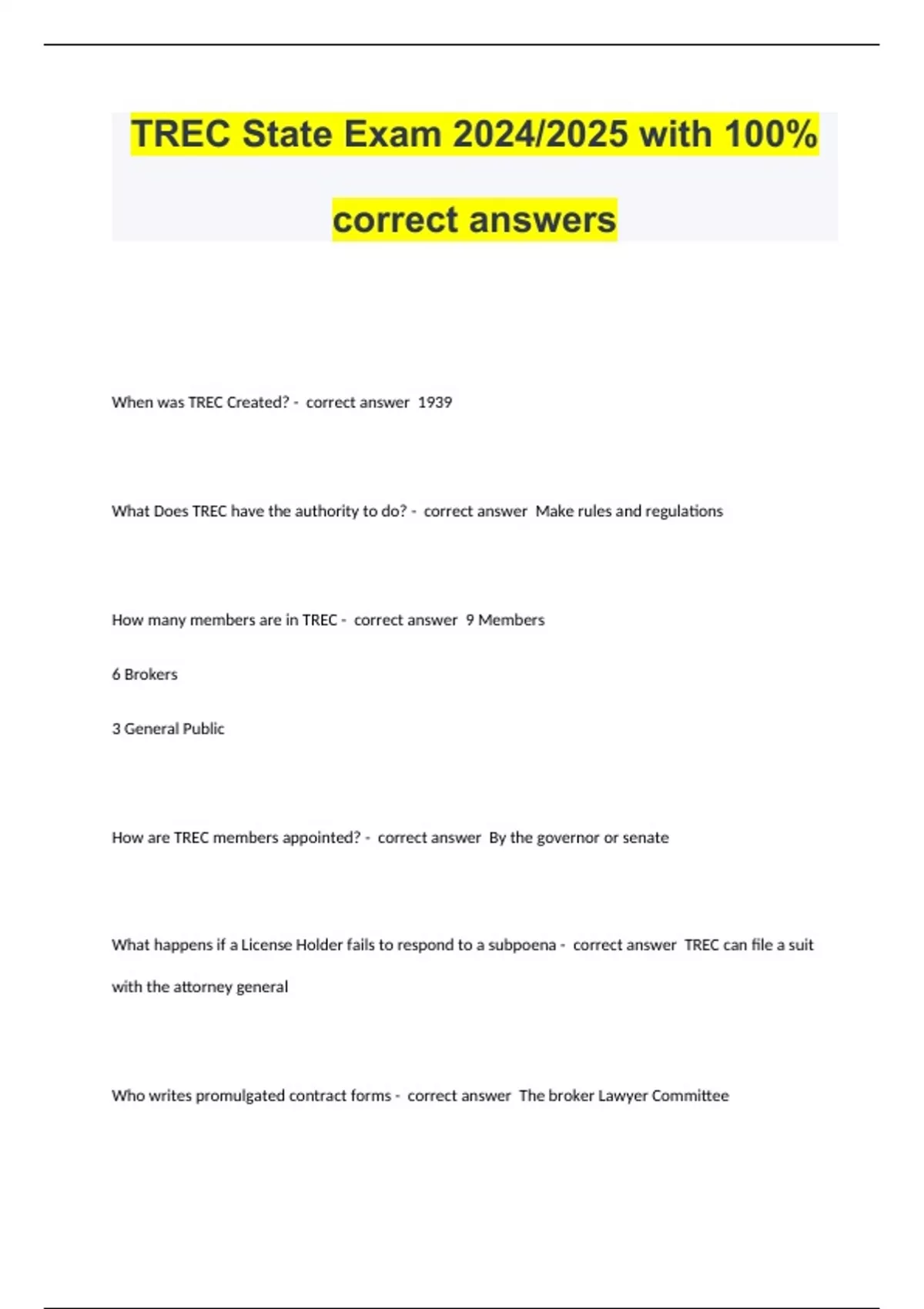 TREC State Exam with 100% correct answersTREC State Exam with 100% correct answersTREC State Exam with 100% correct answersTREC State Exam with 100% correct answersTREC State Exam with 100% correct answersTREC State Exam with 100% correct answersTREC State Exam with 100% correct answersTREC State Exam with 100% correct answersTREC State Exam with 100% correct answers
