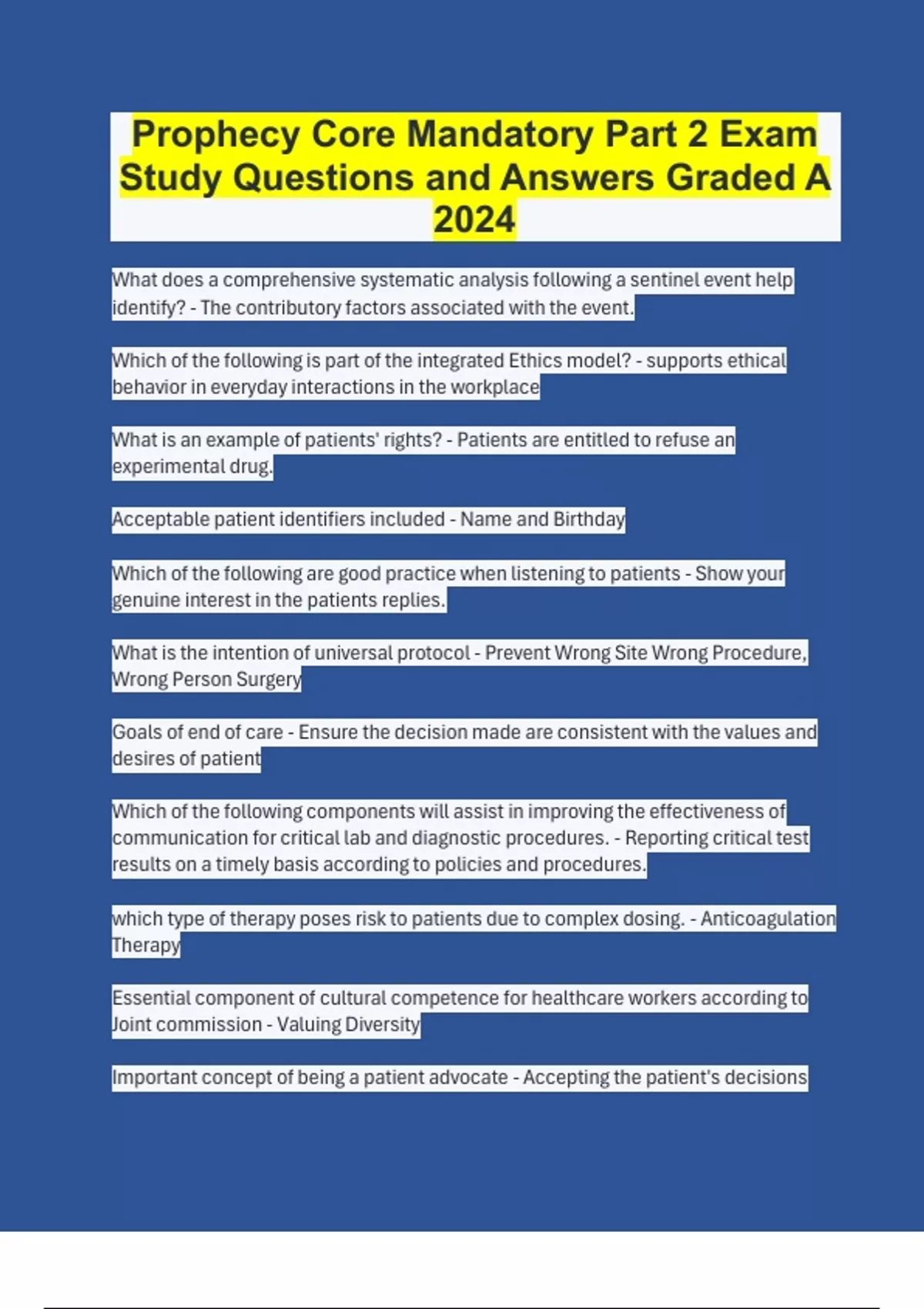 Prophecy Core Mandatory Part 2 Exam Study Questions and Answers Graded A 2024