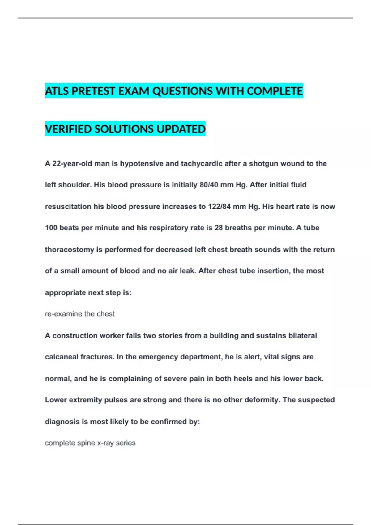 calcaneal fractures. In the emergency department, he is alert, vital signs are